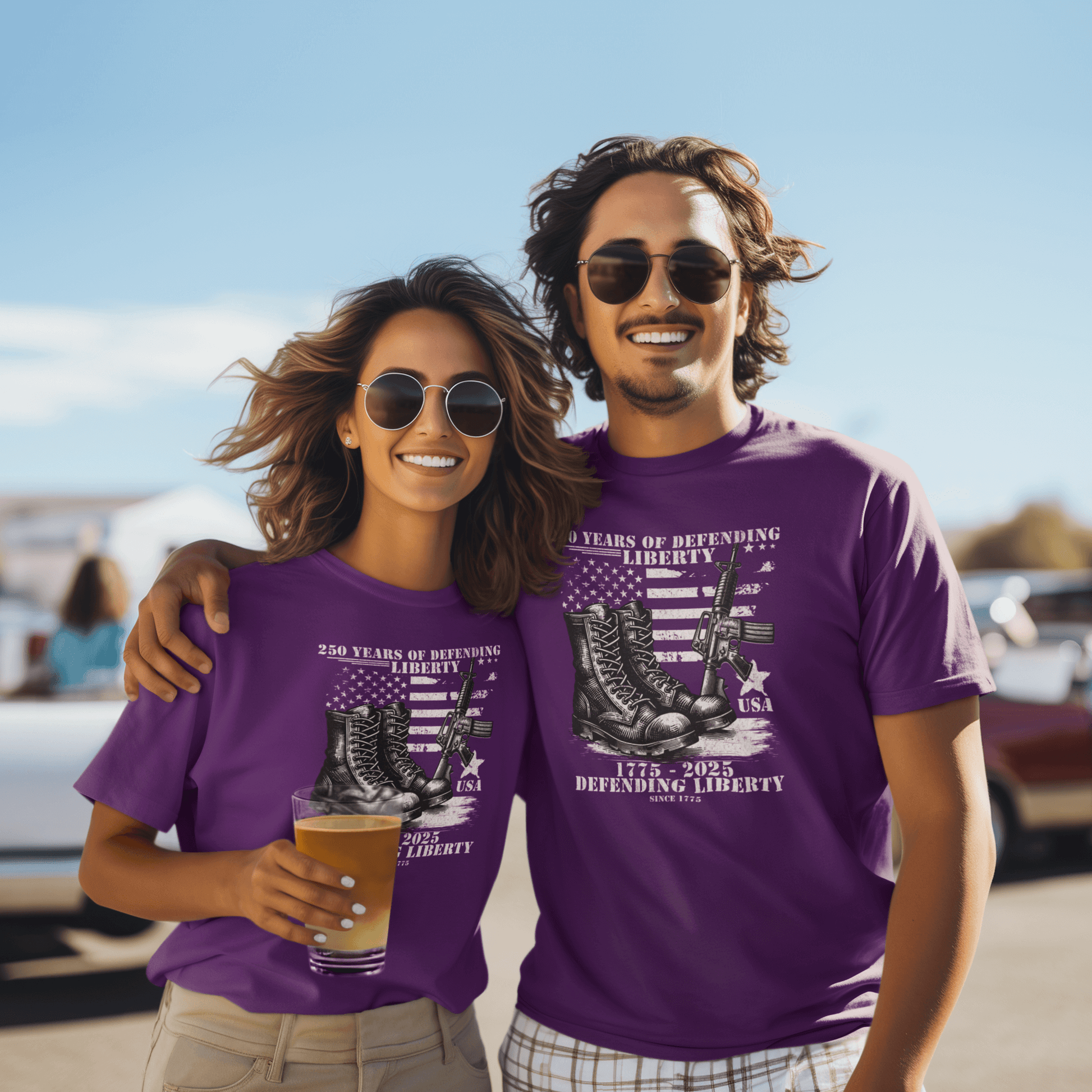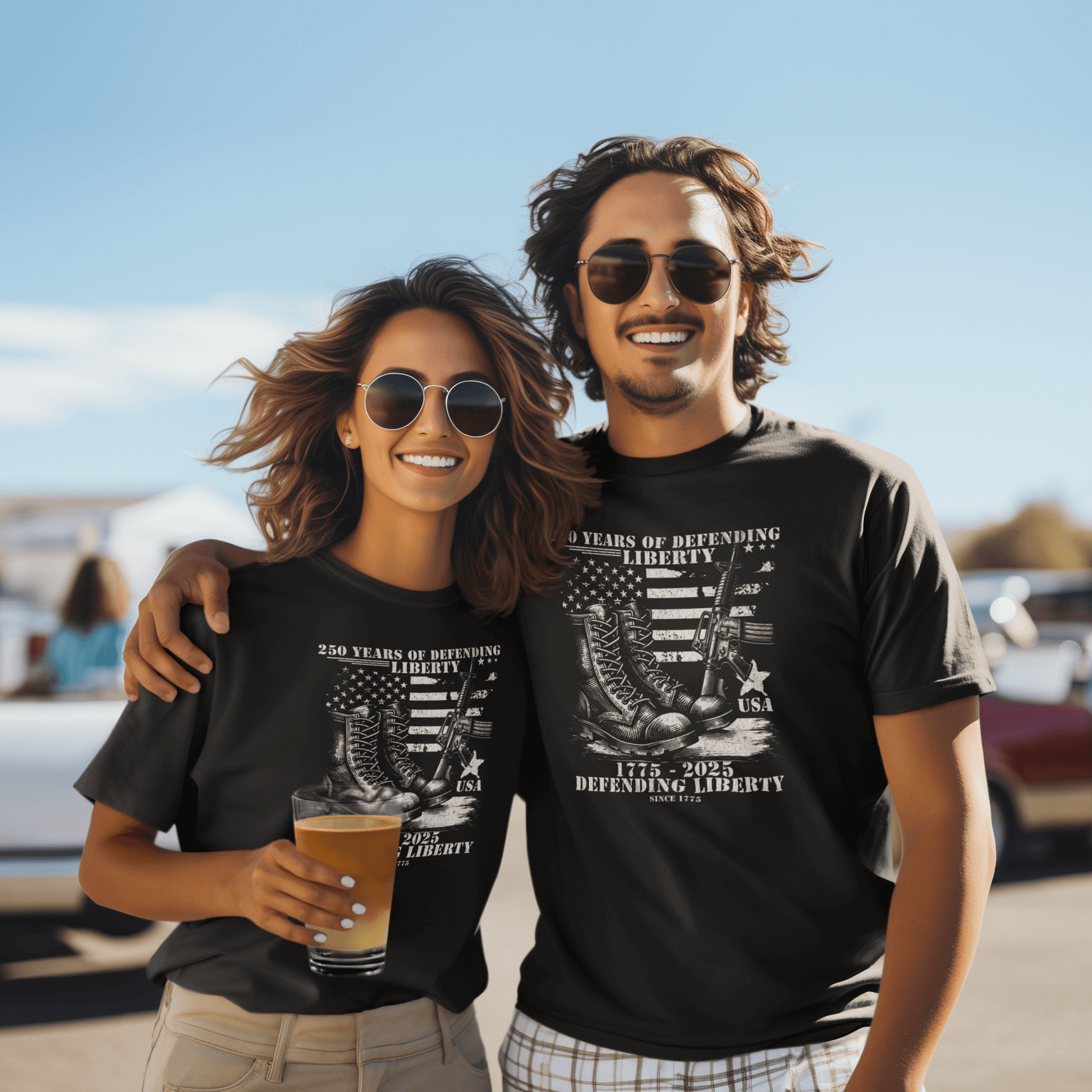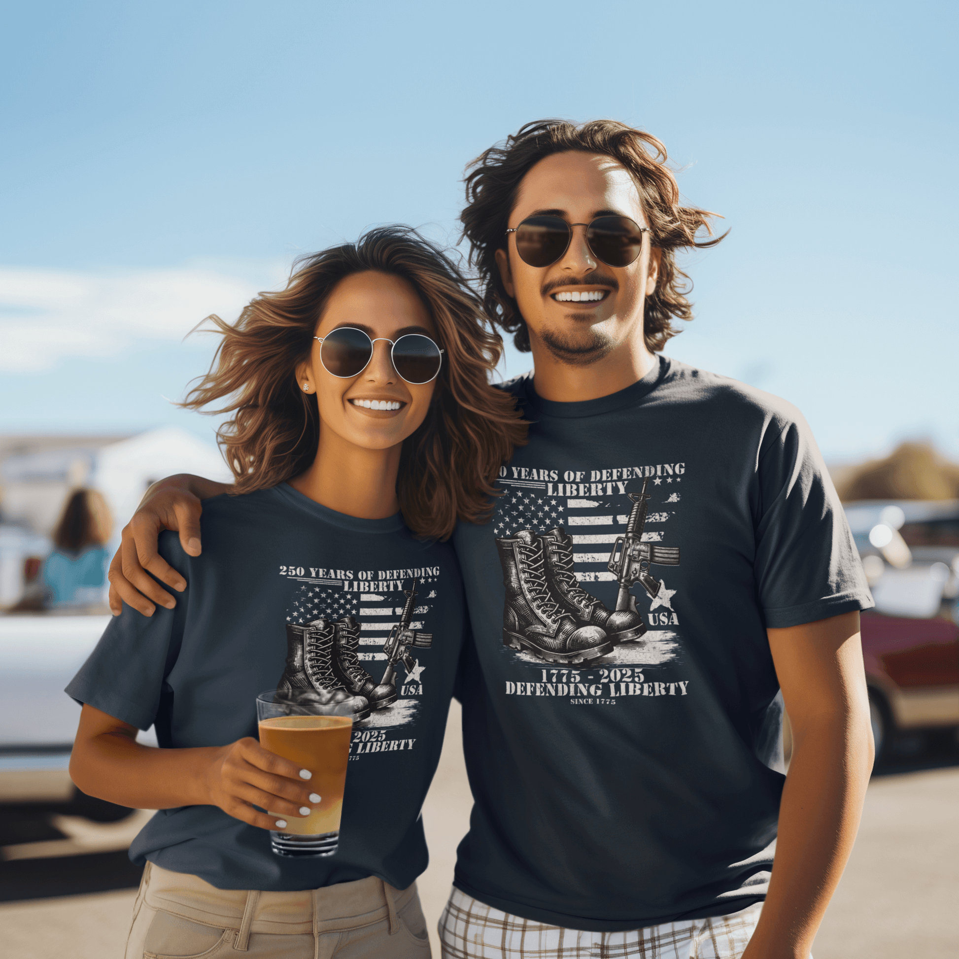 For 250 years, Americans have stood the line so freedom could stand tall. This bold, battle-ready design honors the warriors who’ve defended liberty since 1775—no excuses, no apologies. Featuring iconic boots, steel, and the flag, this shirt is made for those who respect the cost of freedom and aren’t afraid to show it. Wear it with pride. Freedom is never free—and it’s always worth defending.