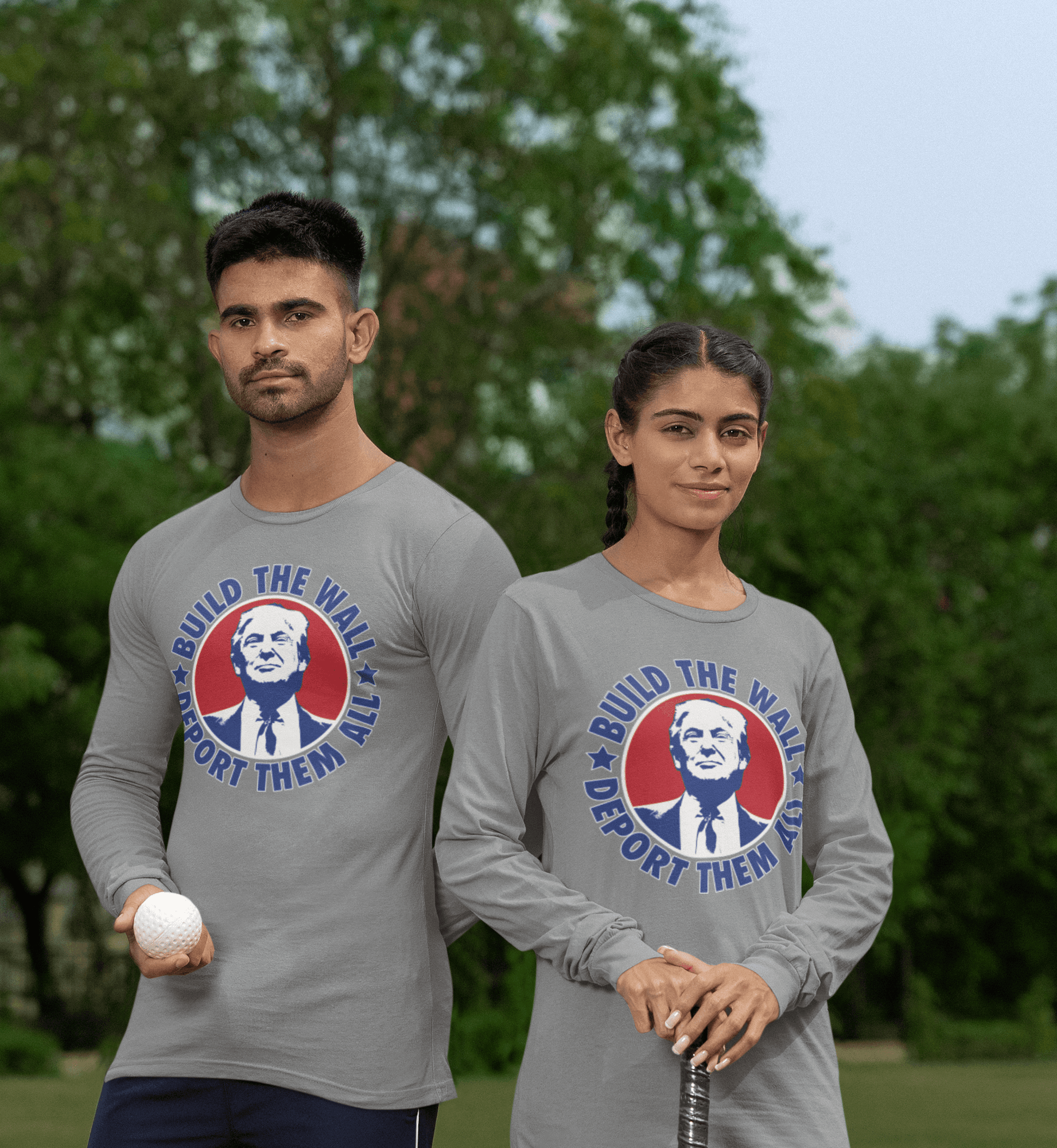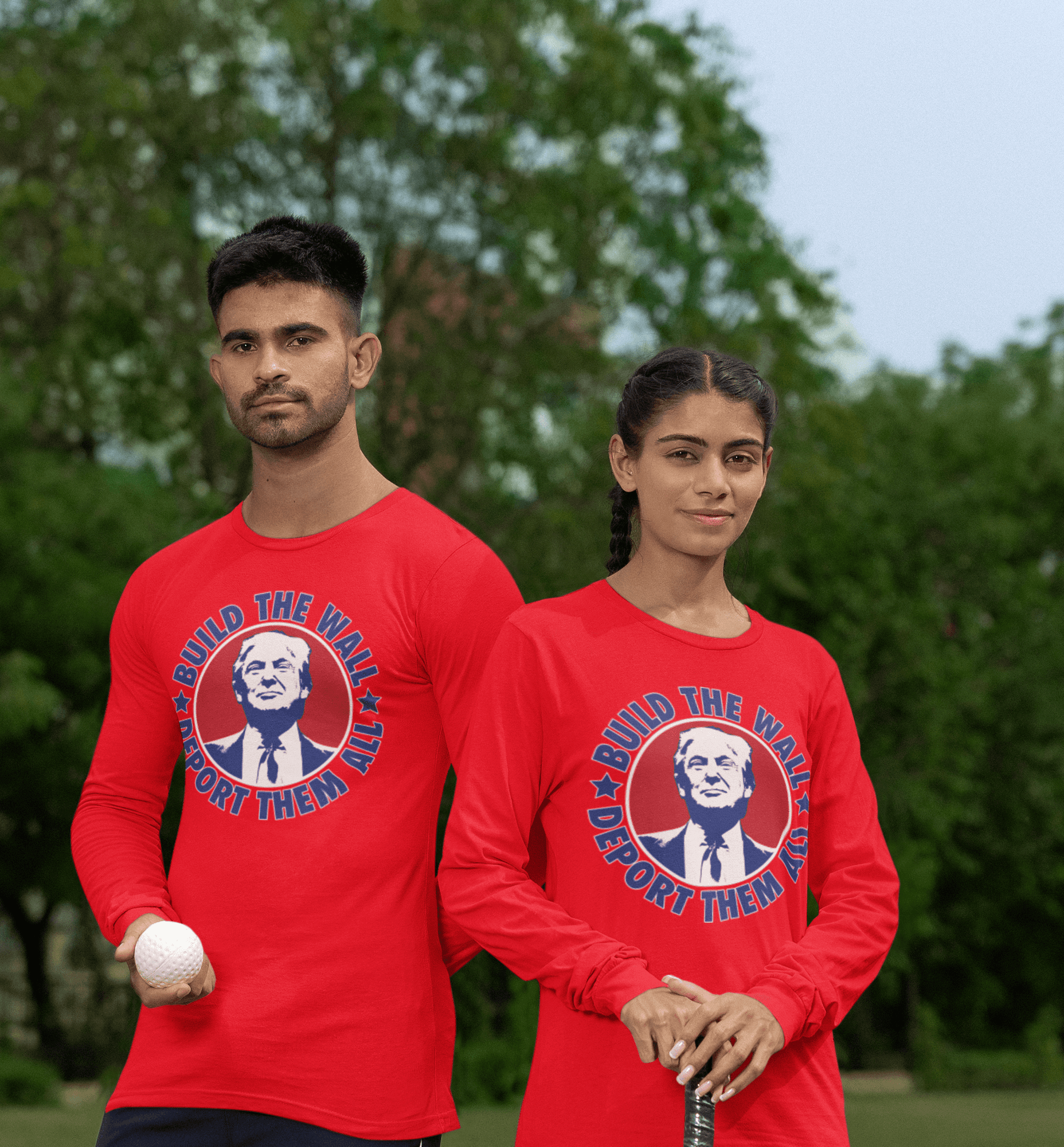 Stand strong for secure borders with the "Build the Wall, Deport Them All" shirt! Designed for bold conservatives who believe in putting America first, this shirt sends a clear message: it's time to finish what we started and protect our nation. Whether you're passionate about border security, immigration reform, or simply supporting Trump's hardline stance, this shirt is a must-have.