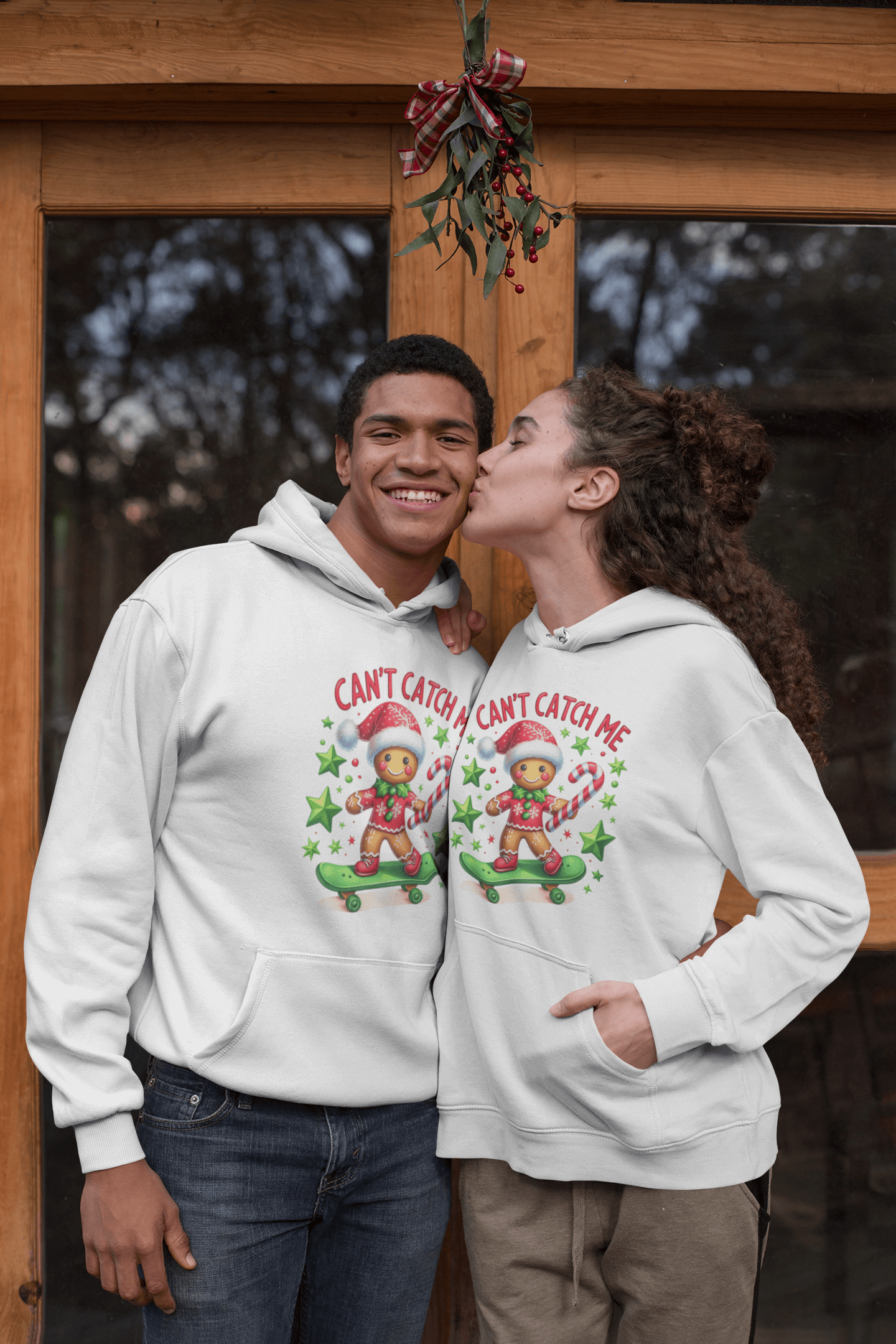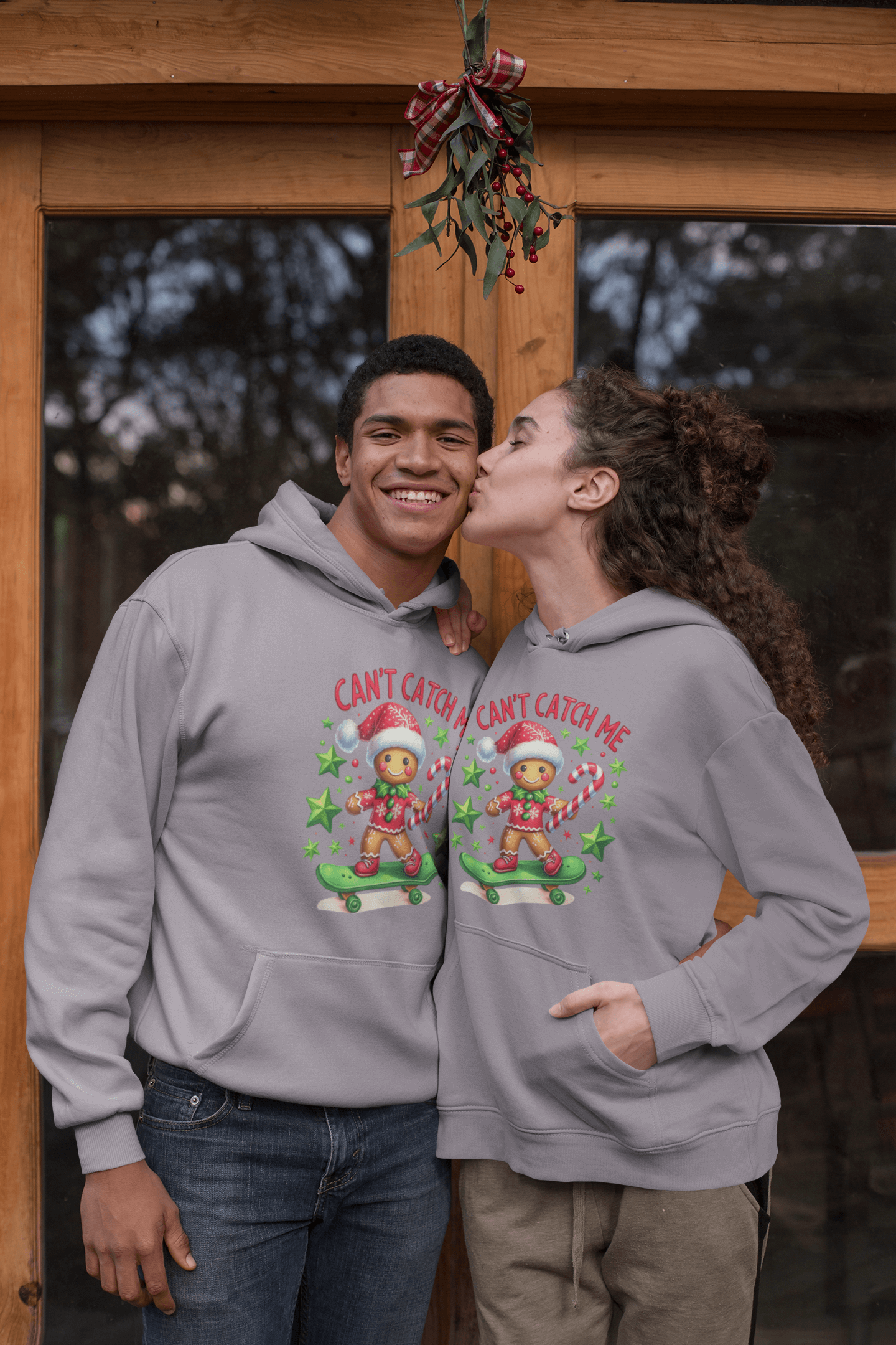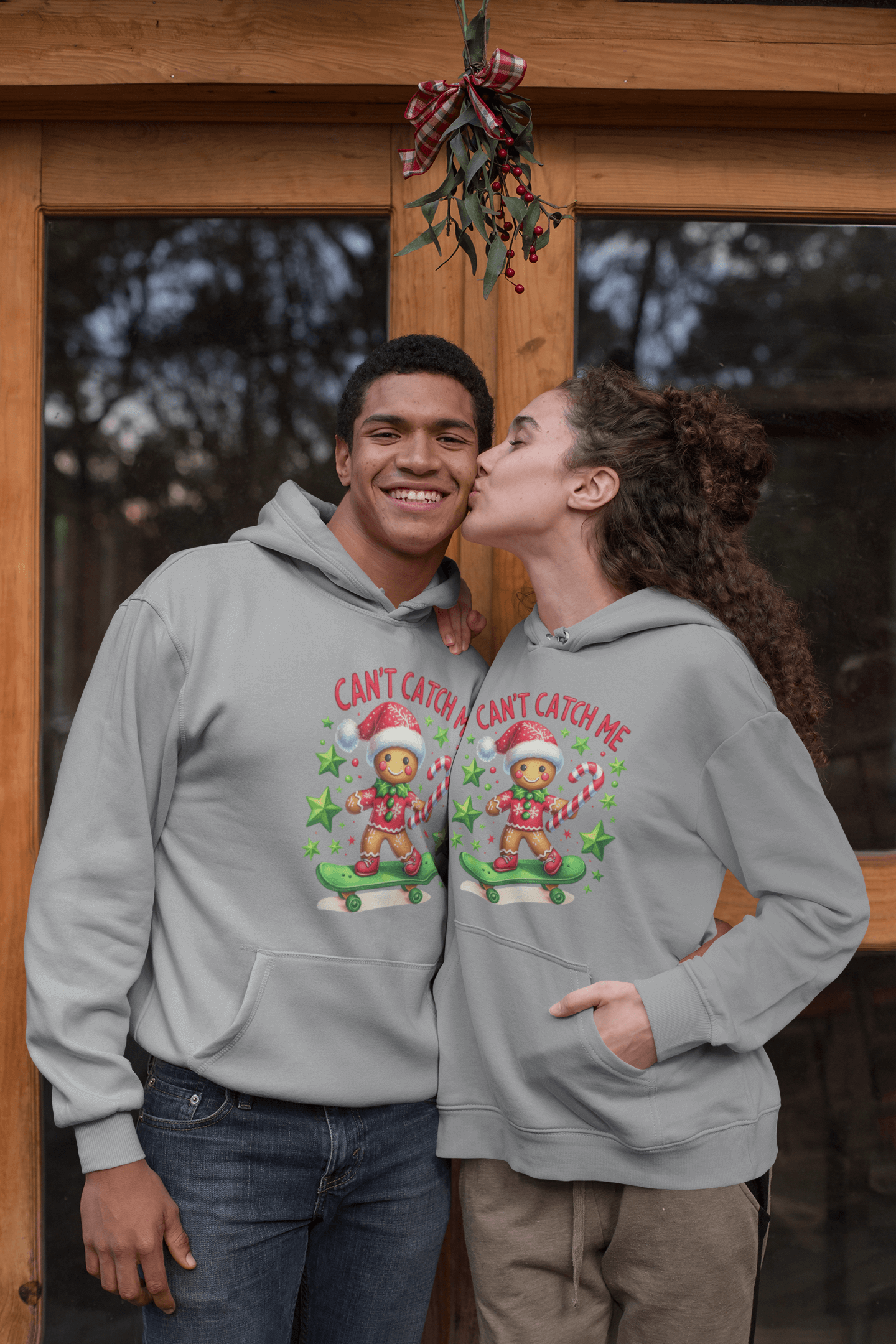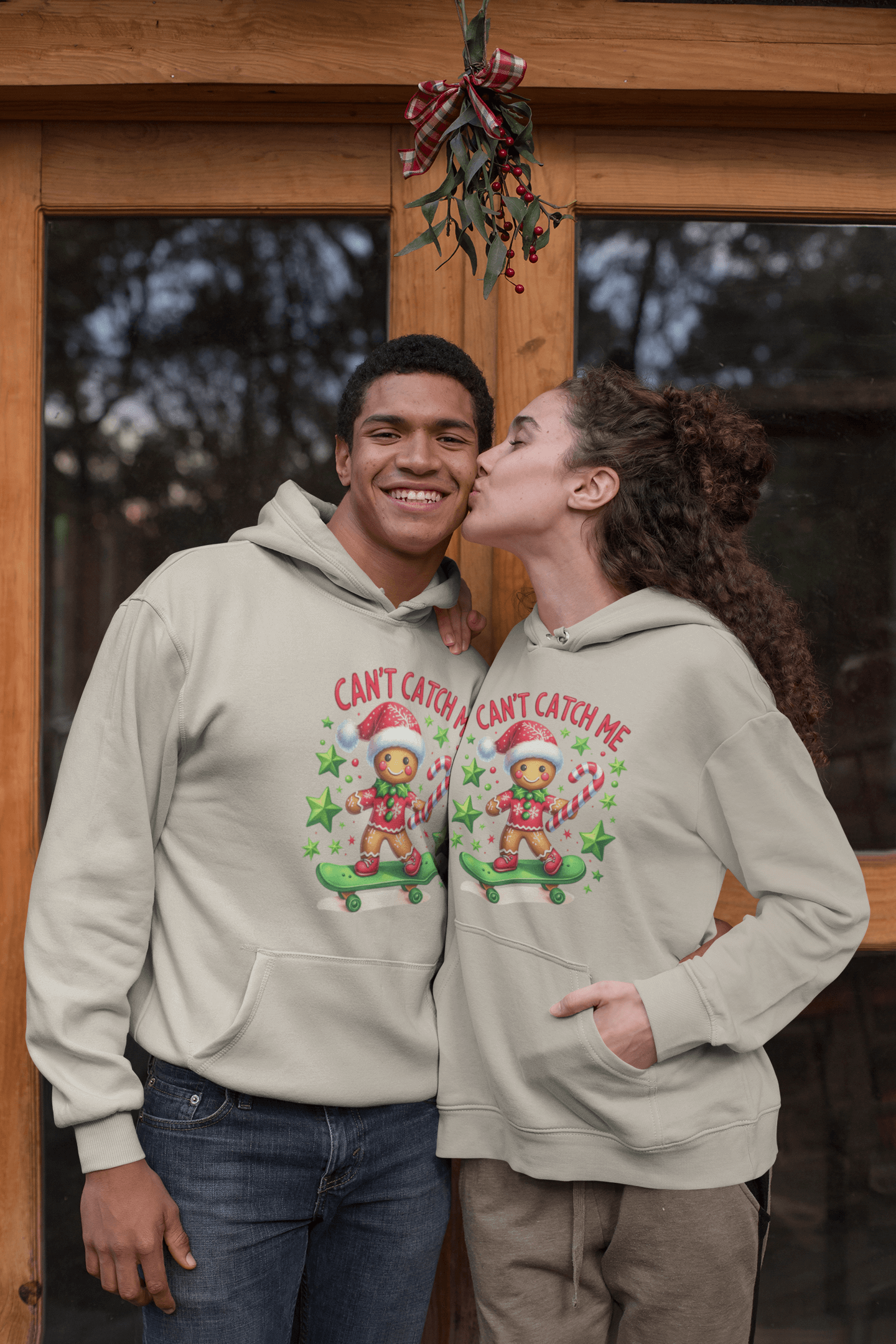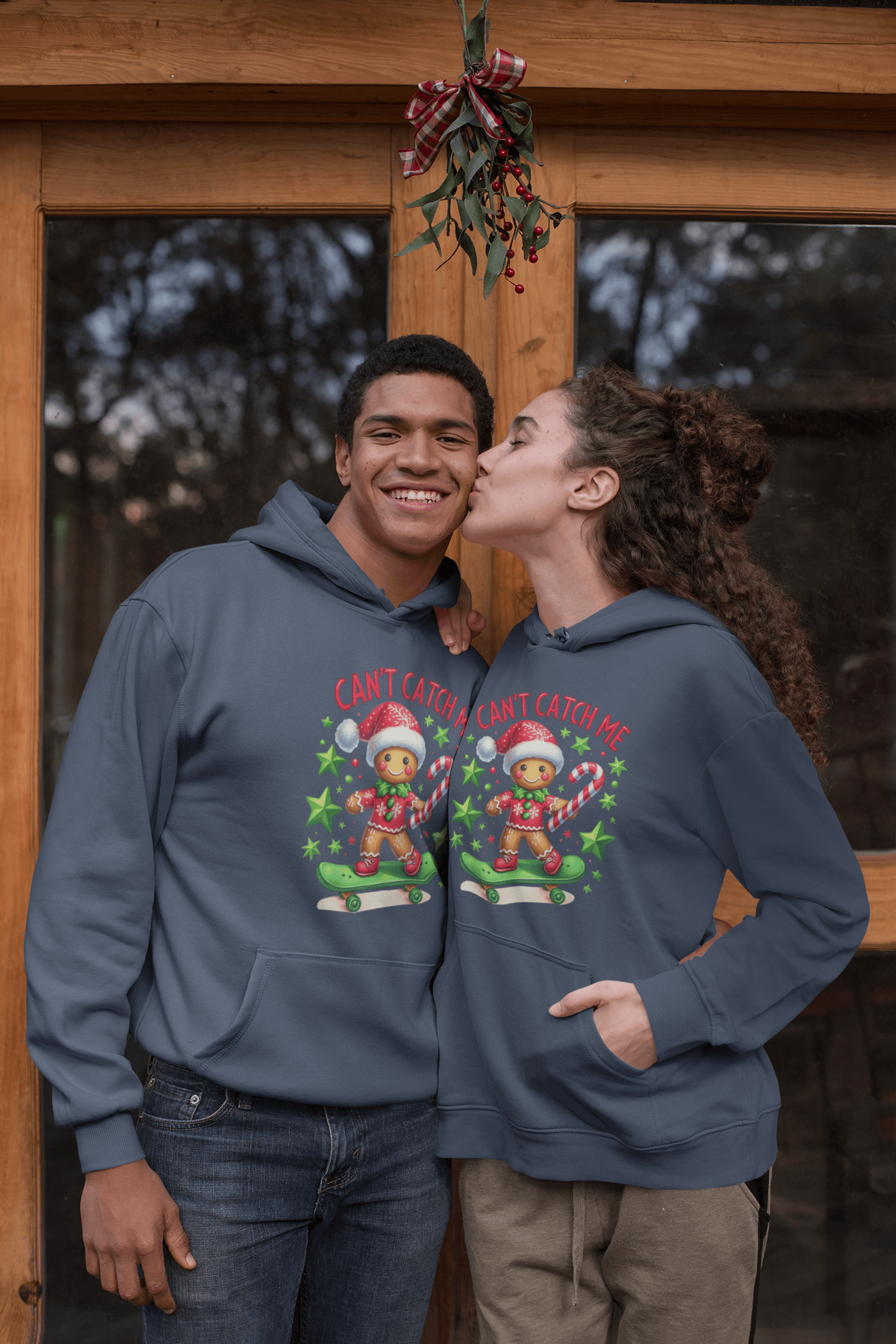 This playful Christmas Hoodie is perfect for anyone who loves a little festive mischief! Featuring a gingerbread man zooming by on a skateboard with the phrase "Can't Catch Me," this design puts a modern twist on the classic holiday story. It's great for skateboard enthusiasts, fans of sweet treats, or anyone who likes to show off their quick wit (and maybe quick feet) during the holiday season. Soft, comfy, and bursting with personality, this hoodie is sure to bring smiles at Christmas parties or while unwrapping gifts. Who needs a sleigh when you’ve got wheels?