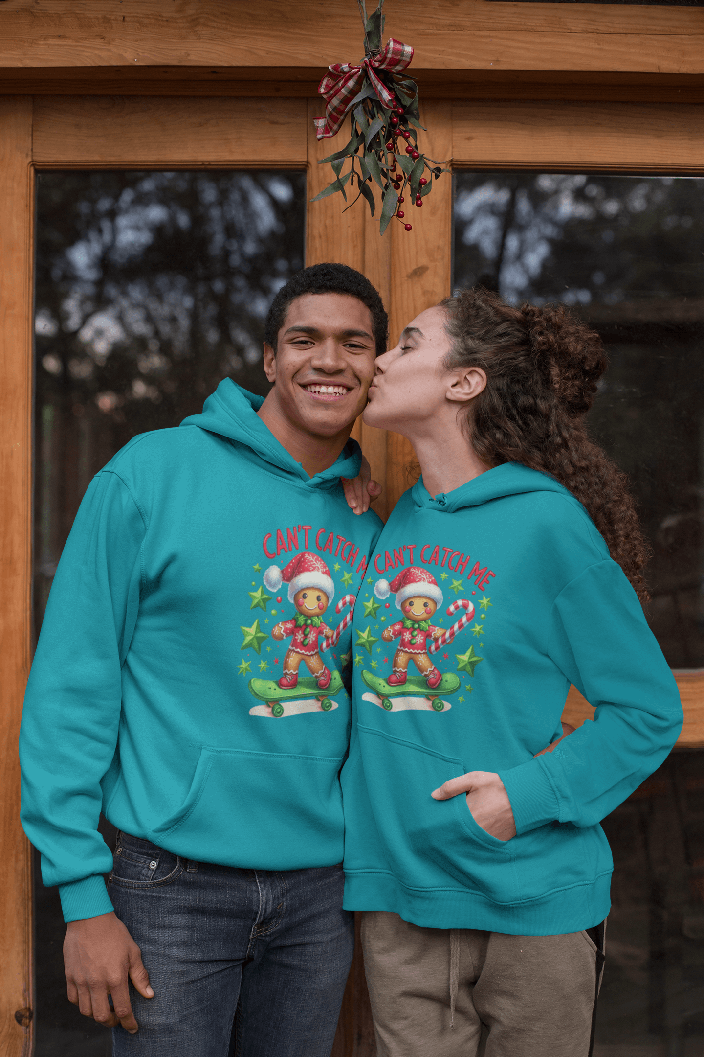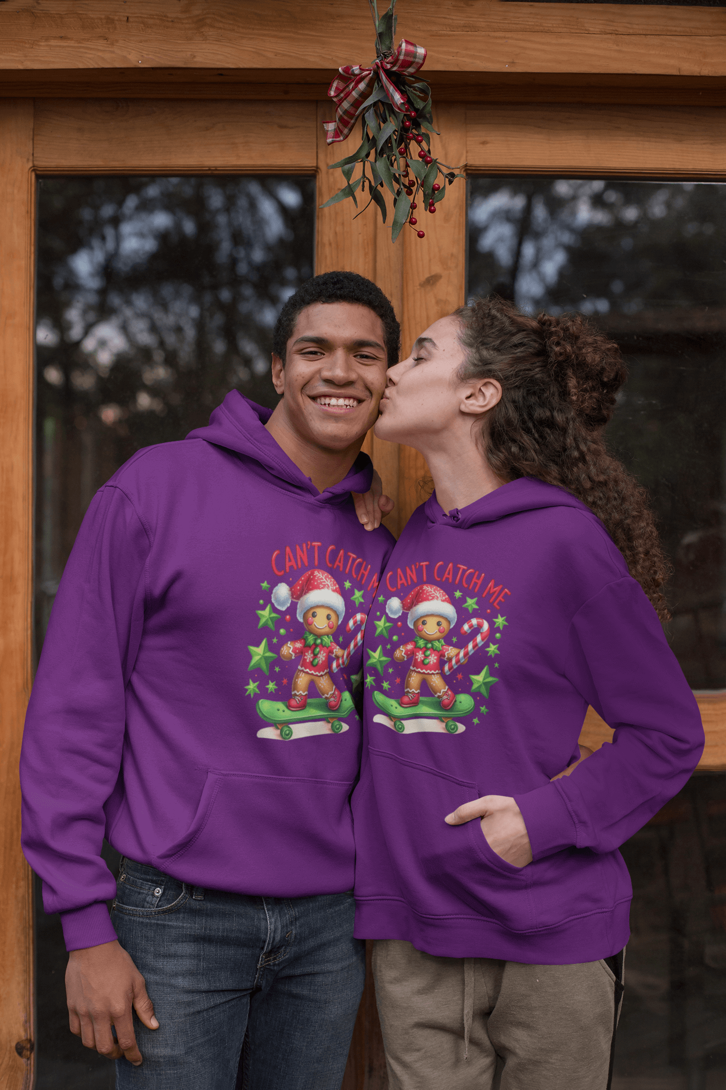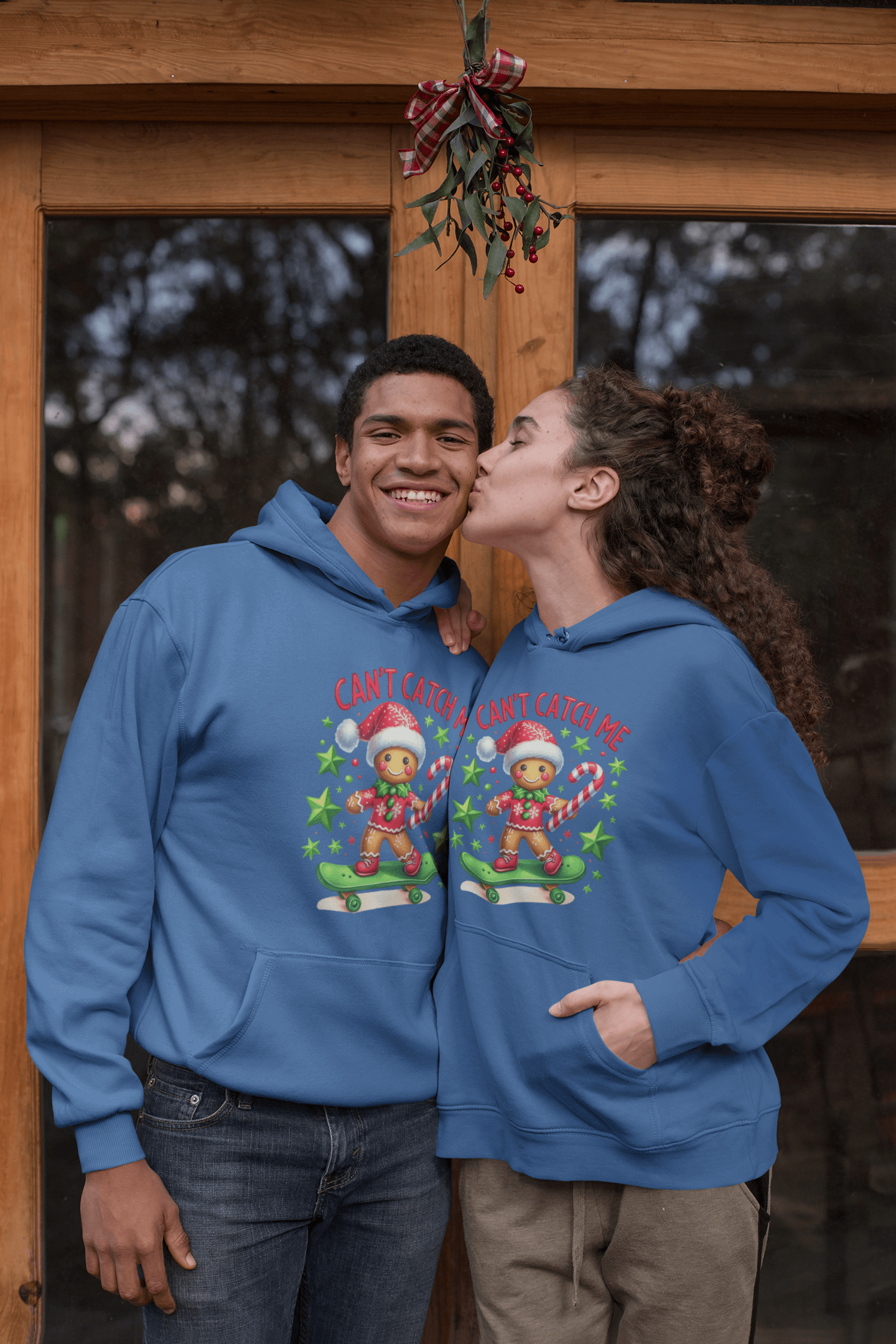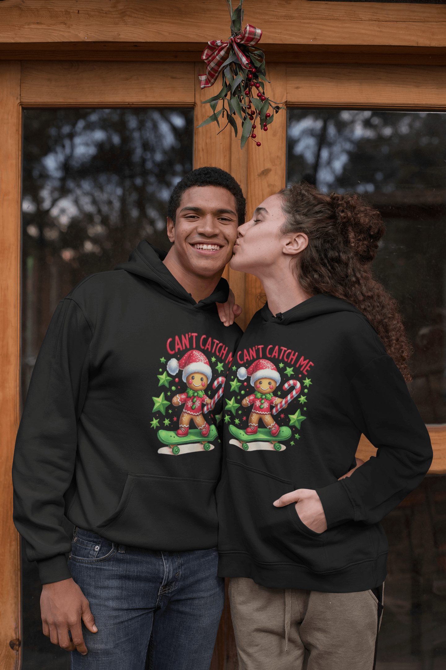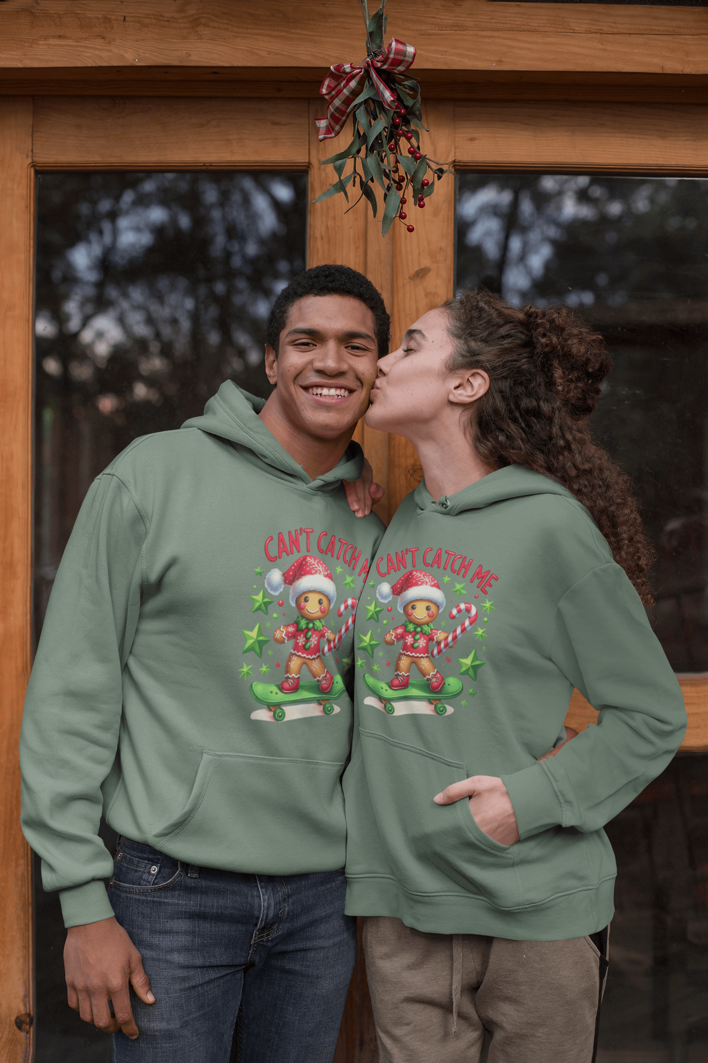 This playful Christmas Hoodie is perfect for anyone who loves a little festive mischief! Featuring a gingerbread man zooming by on a skateboard with the phrase "Can't Catch Me," this design puts a modern twist on the classic holiday story. It's great for skateboard enthusiasts, fans of sweet treats, or anyone who likes to show off their quick wit (and maybe quick feet) during the holiday season. Soft, comfy, and bursting with personality, this hoodie is sure to bring smiles at Christmas parties or while unwrapping gifts. Who needs a sleigh when you’ve got wheels?