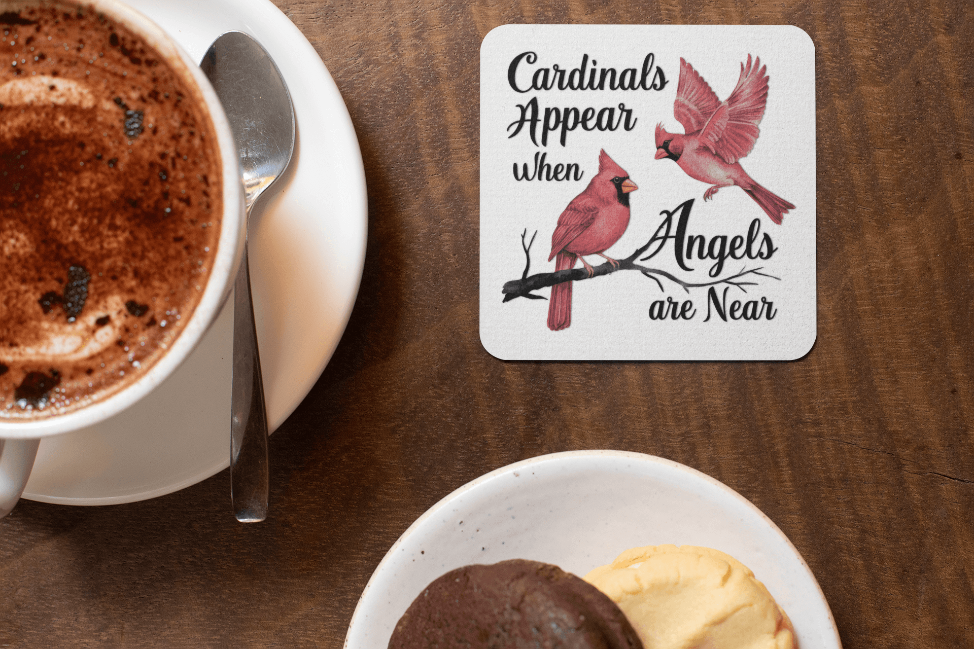 This elegant ceramic coaster features a touching design of two cardinals with the comforting message: “Cardinals Appear When Angels Are Near.” A beautiful reminder of loved ones watching over us, it’s perfect for memorial gifts or everyday inspiration. Protect your surfaces while keeping cherished memories close. Order yours today and add a meaningful touch to your home or gift-giving.