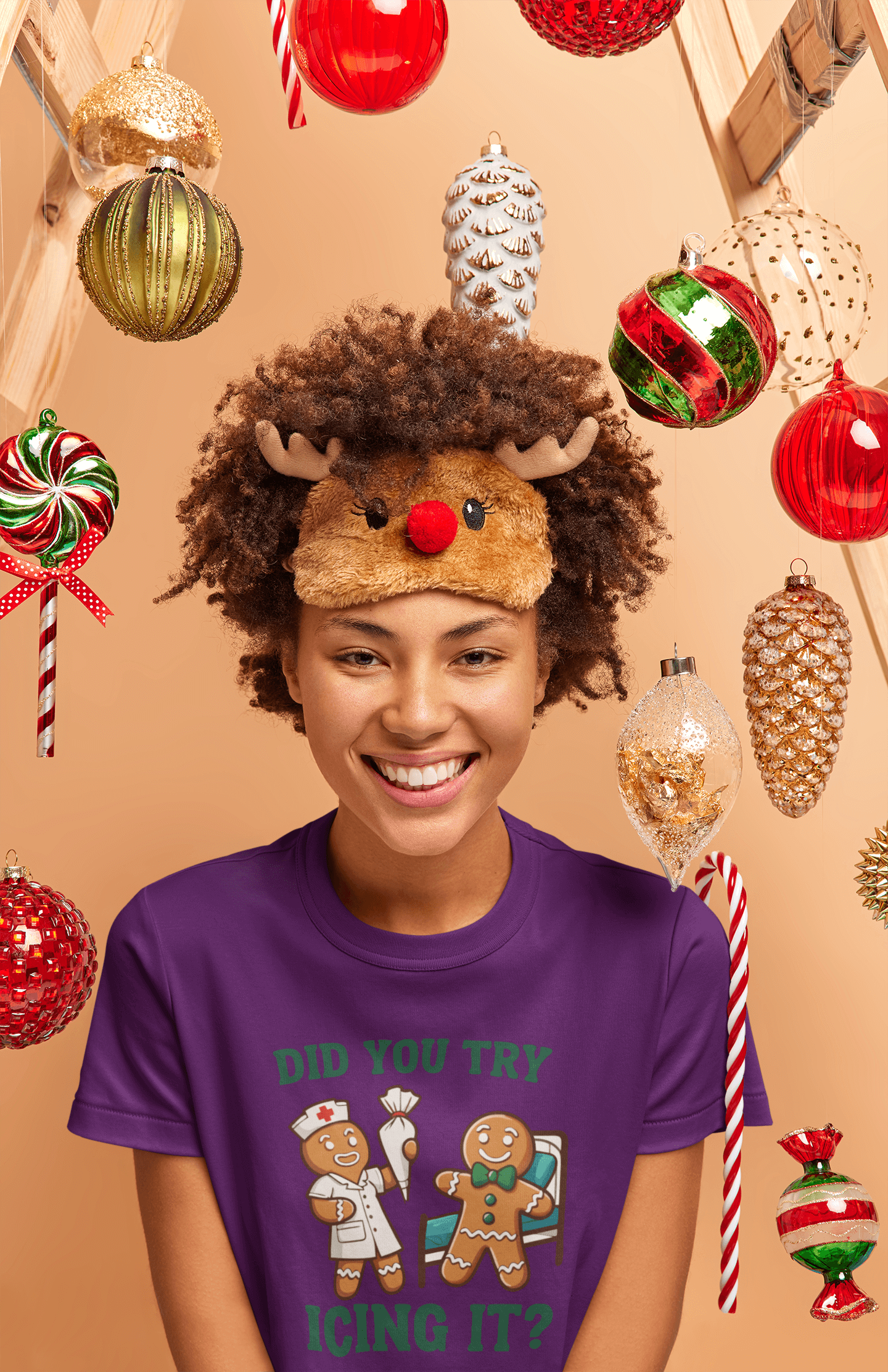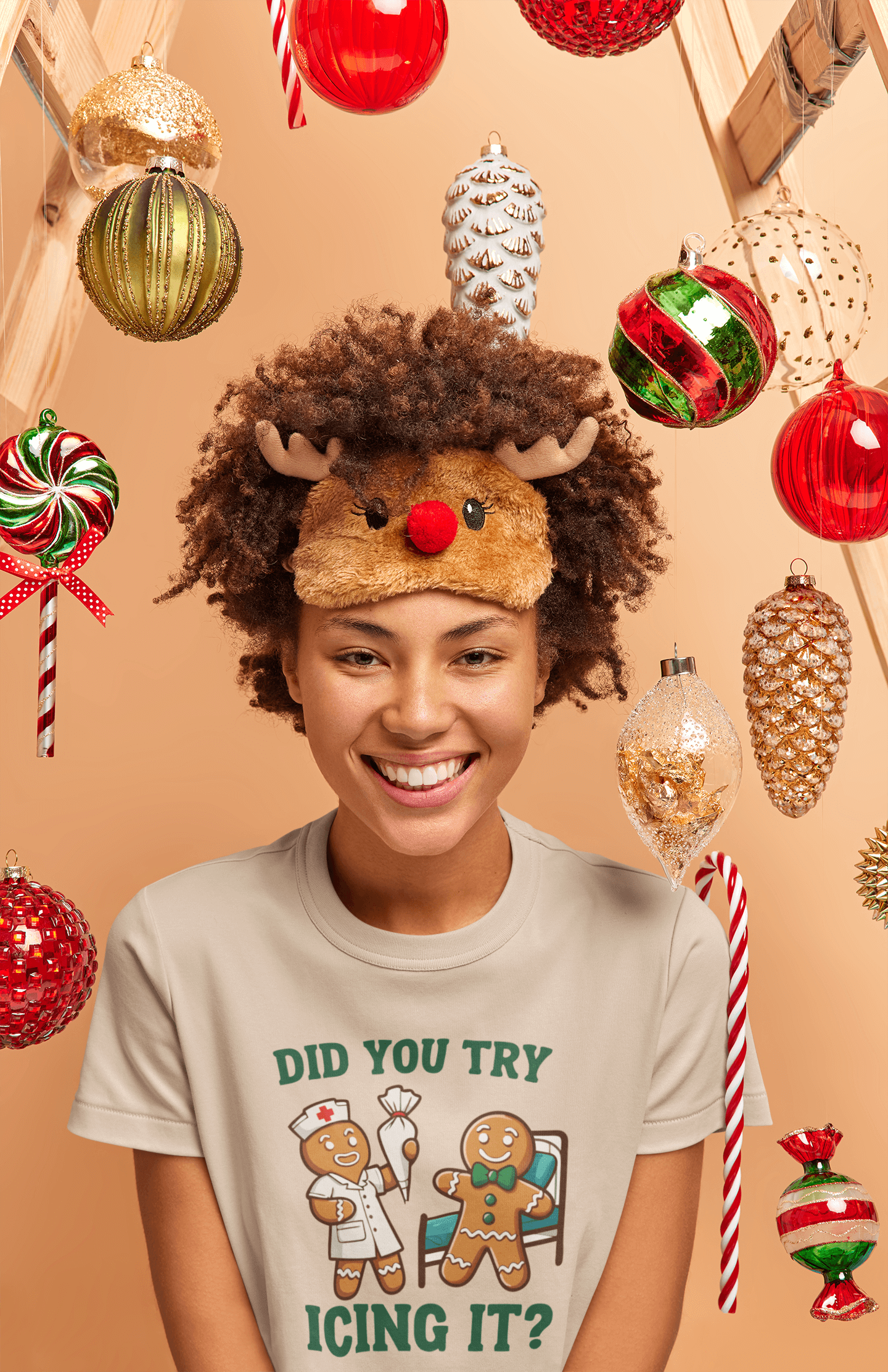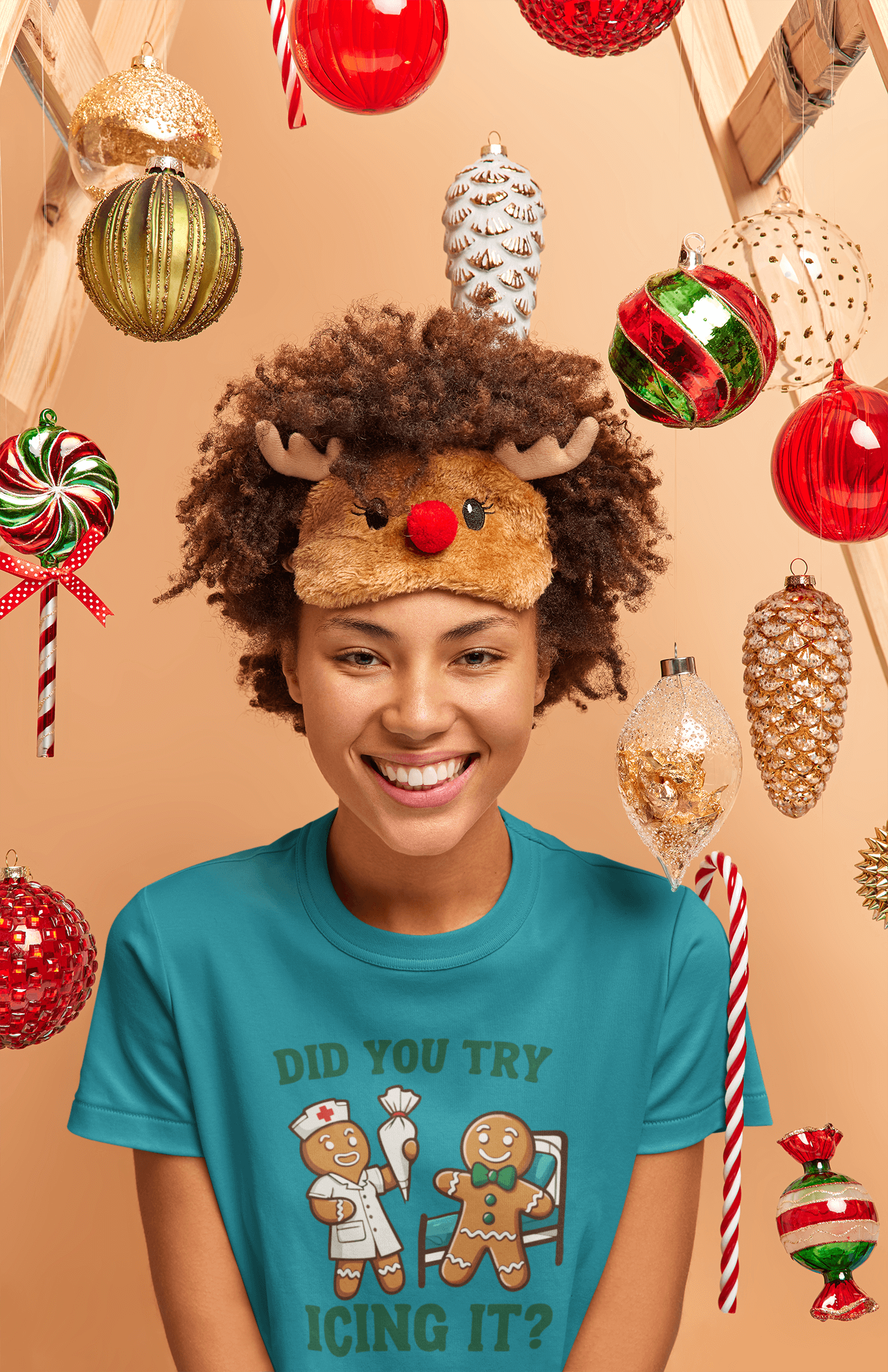 This T-shirt is a recipe for holiday laughter! Featuring a gingerbread nurse offering the classic fix-it advice with the hilarious line, "Did You Try Icing It?" this design is perfect for anyone who appreciates puns and festive humor. Whether you're in healthcare or just someone who loves a good gingerbread pun, this shirt is a sweet way to spread holiday cheer. Cozy, witty, and full of Christmas spirit, it's the perfect gift or addition to your own holiday wardrobe. Because sometimes, icing really does fix everything!