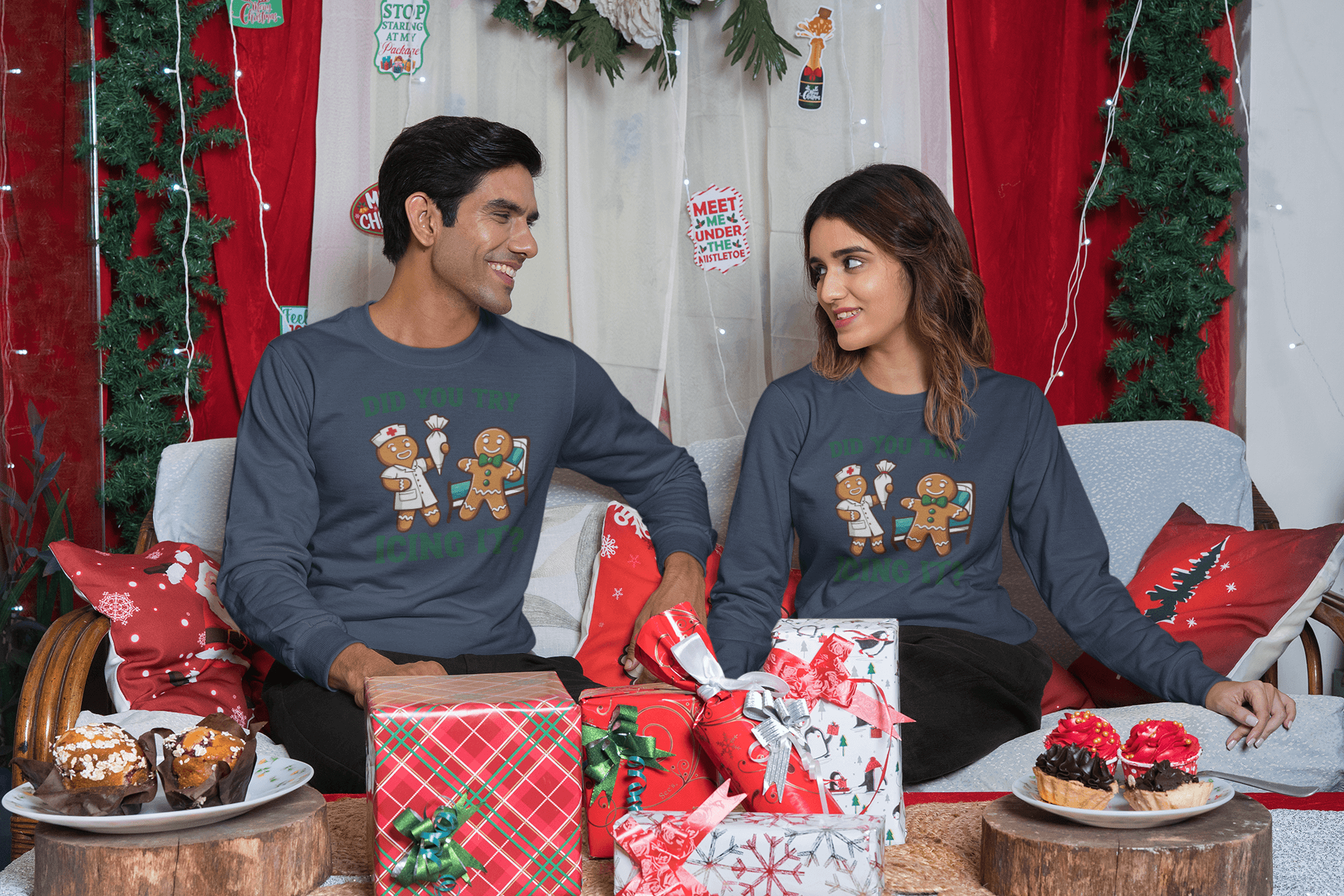 This Sweatshirt is a recipe for holiday laughter! Featuring a gingerbread nurse offering the classic fix-it advice with the hilarious line, "Did You Try Icing It?" this design is perfect for anyone who appreciates puns and festive humor. Whether you're in healthcare or just someone who loves a good gingerbread pun, this sweatshirt is a sweet way to spread holiday cheer. Cozy, witty, and full of Christmas spirit, it's the perfect gift or addition to your own holiday wardrobe. Because sometimes, icing really does fix everything!