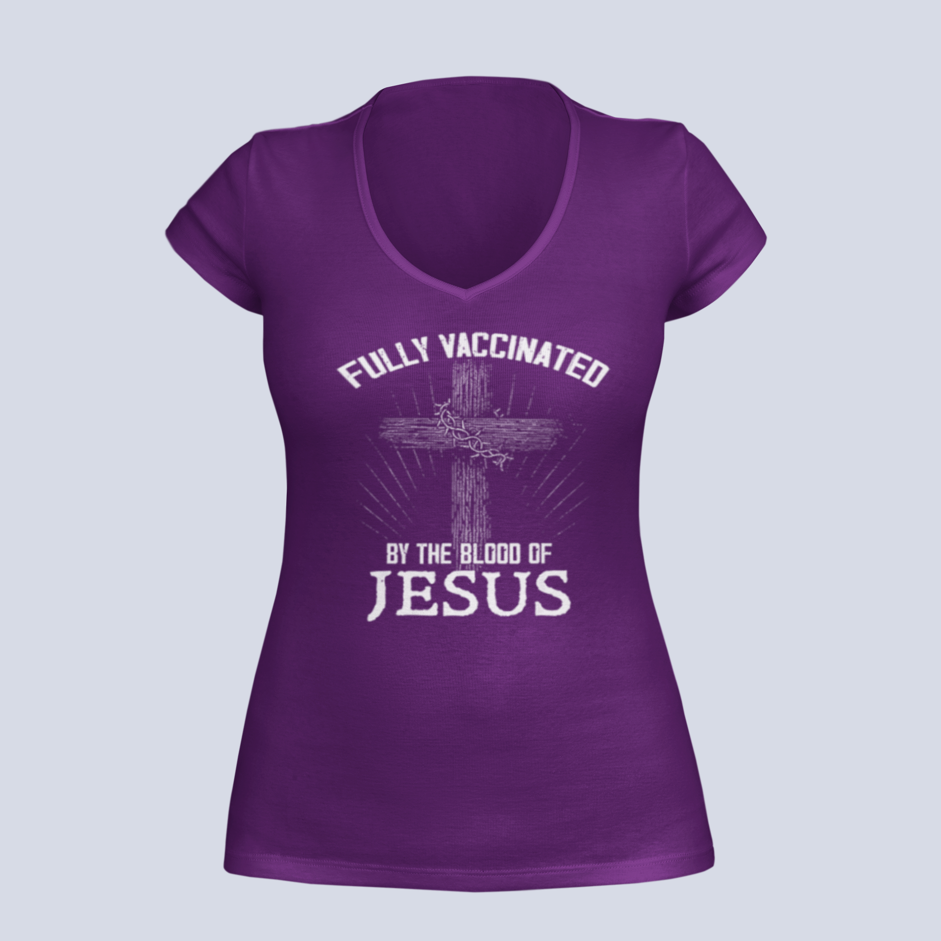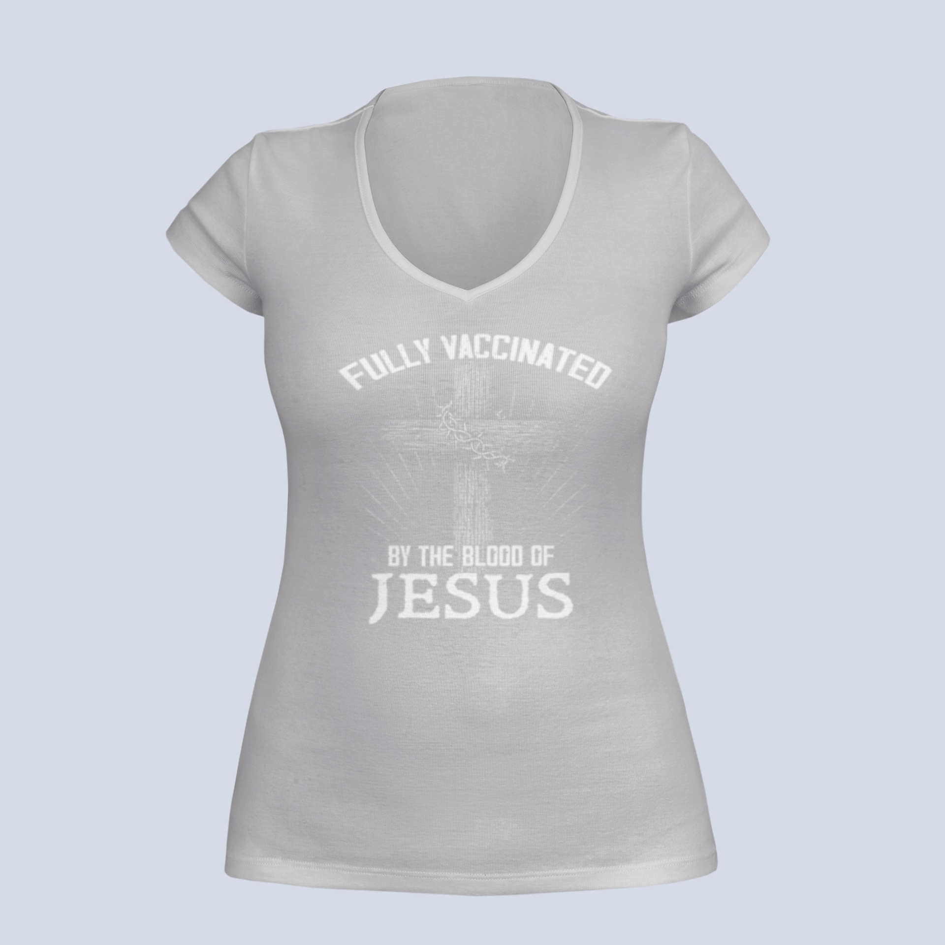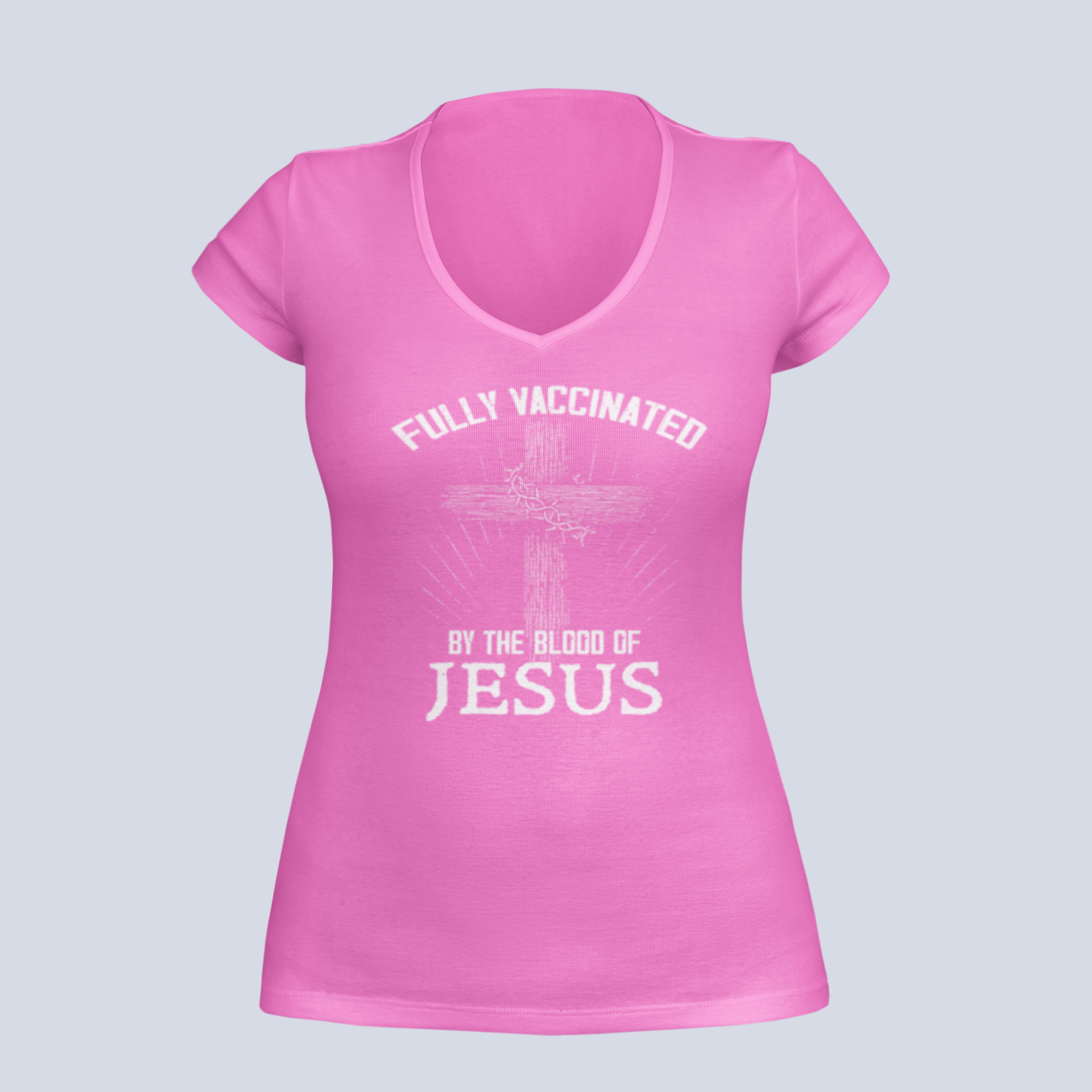 Fully Vaccinated by the Blood of Jesus - T-Shirt - Ladies V-Neck