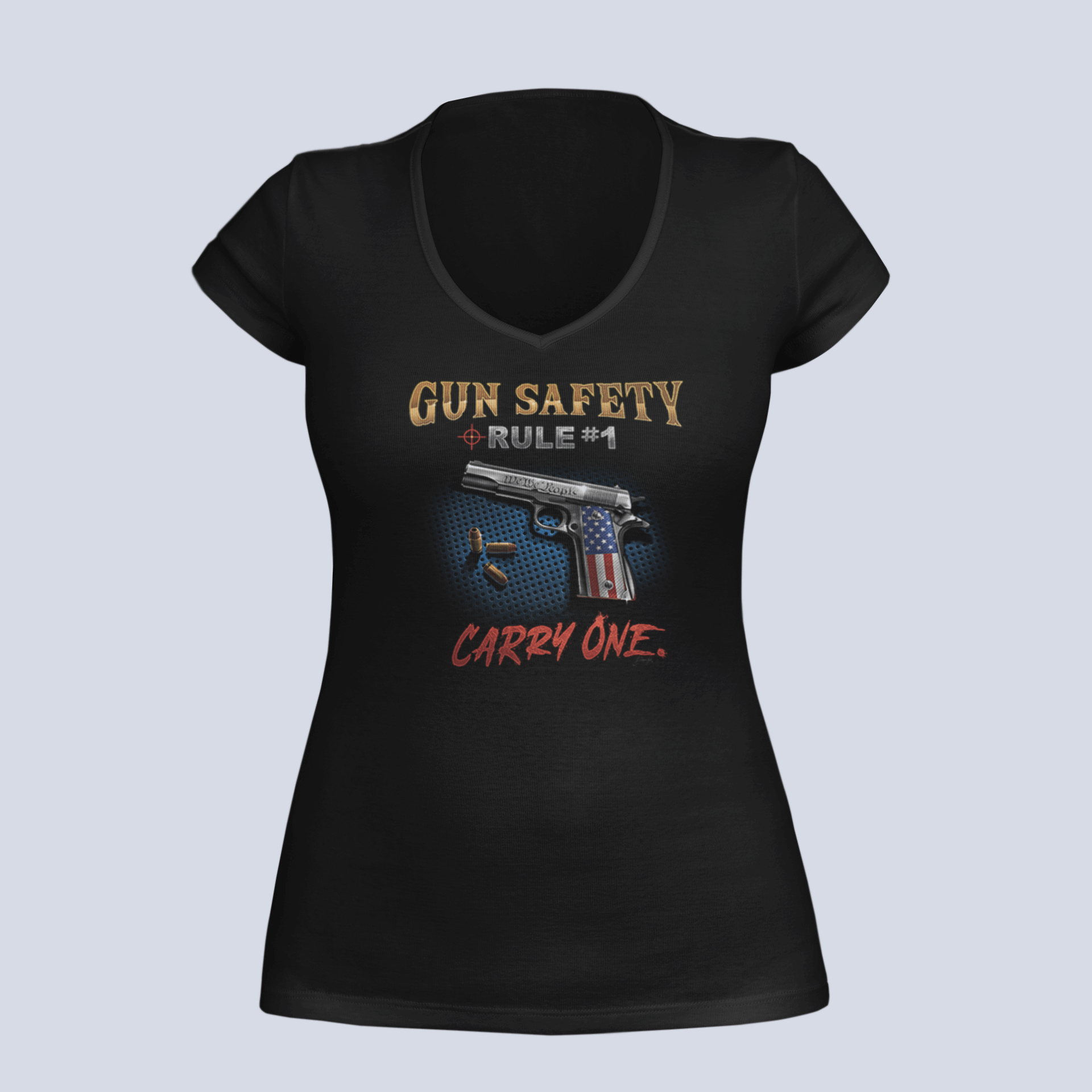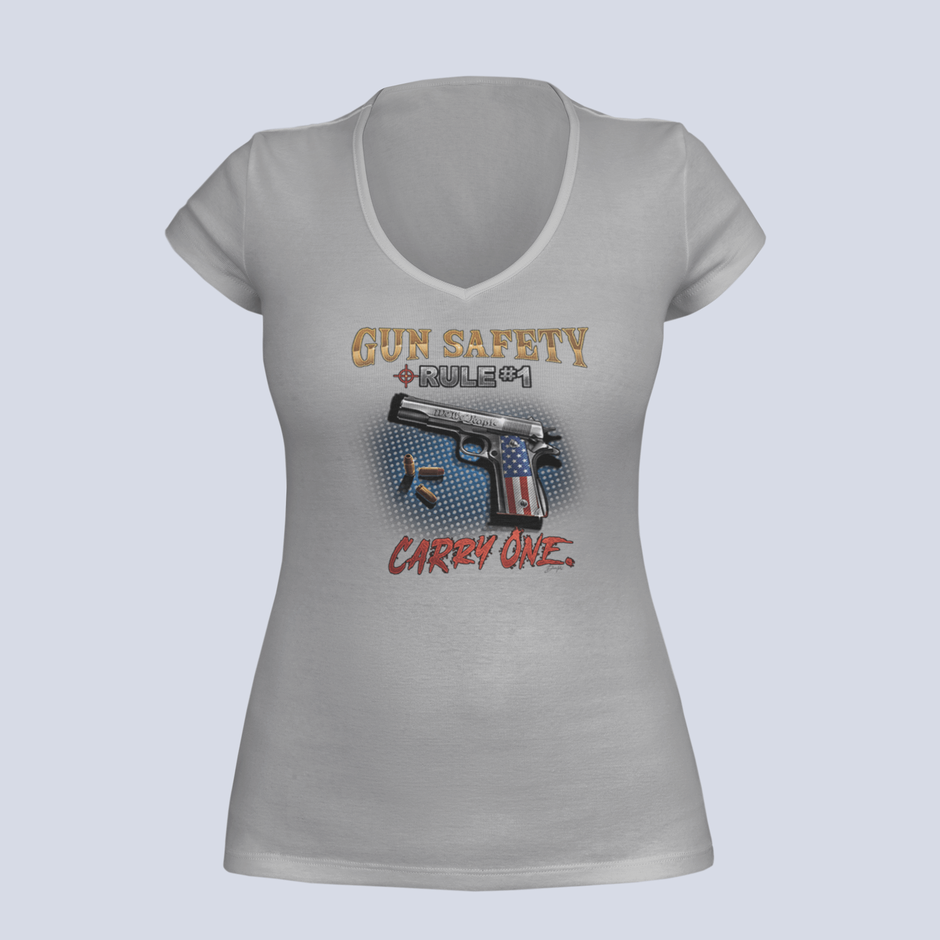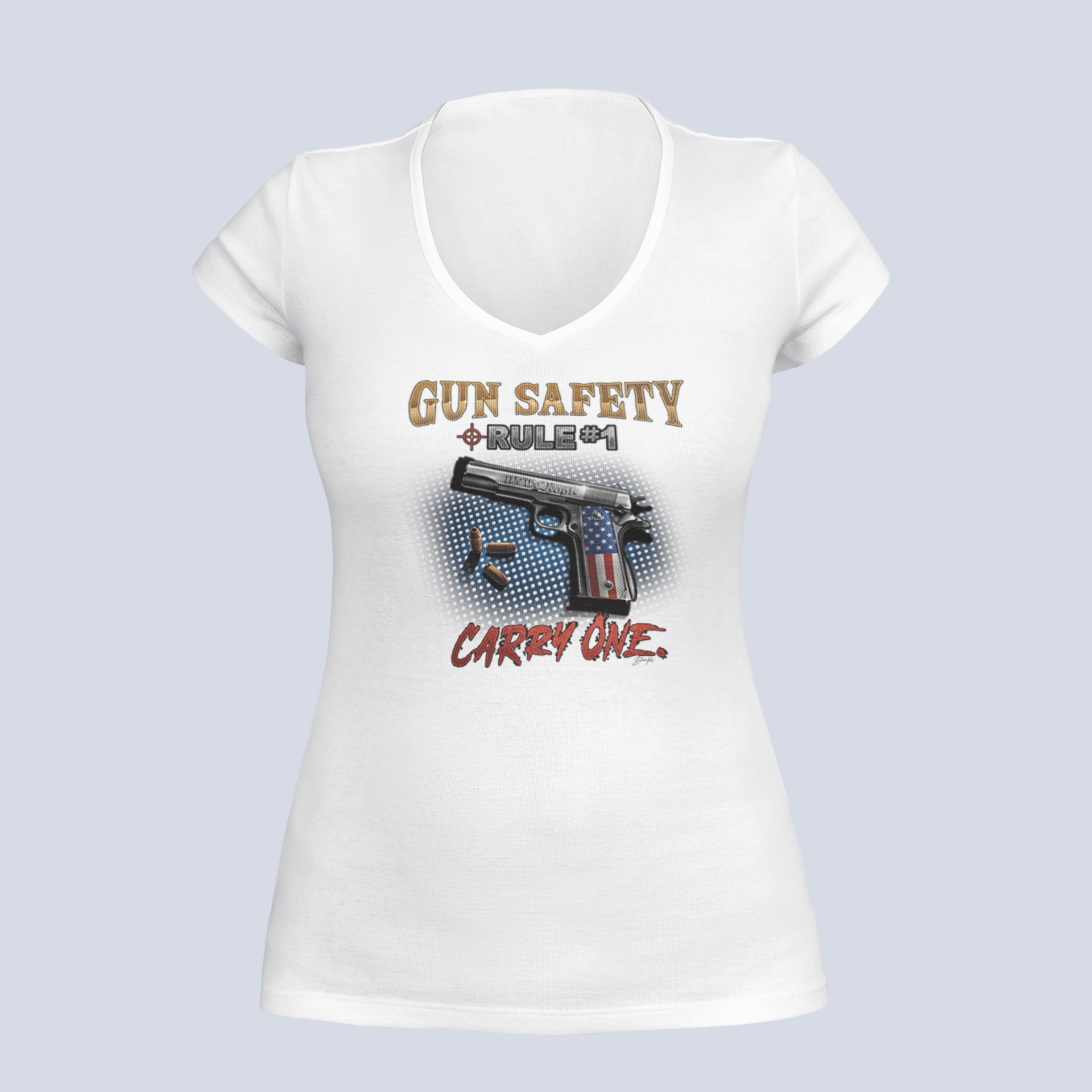 Gun Safety Rule #1: Carry One T-Shirt - Ladies V-Neck