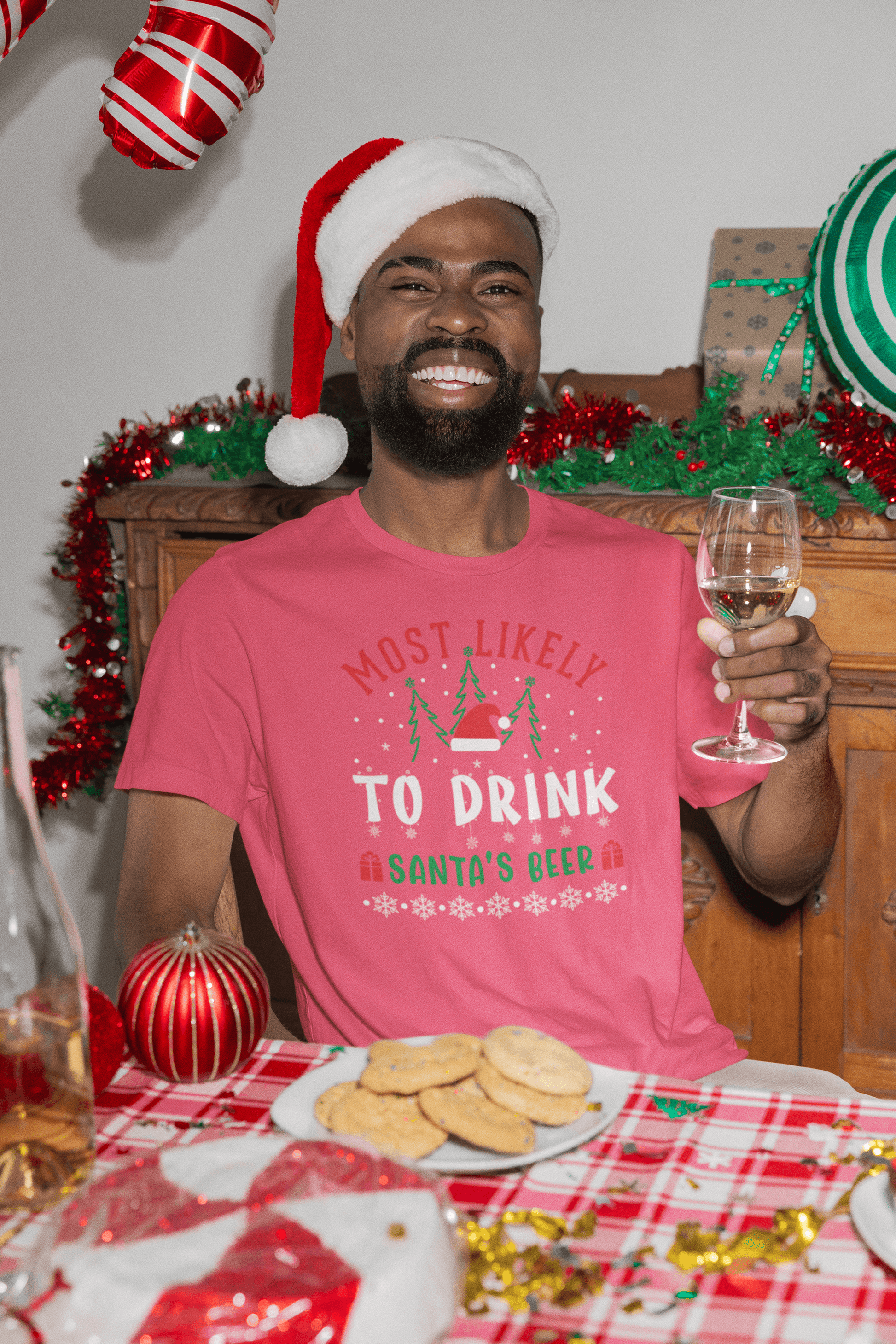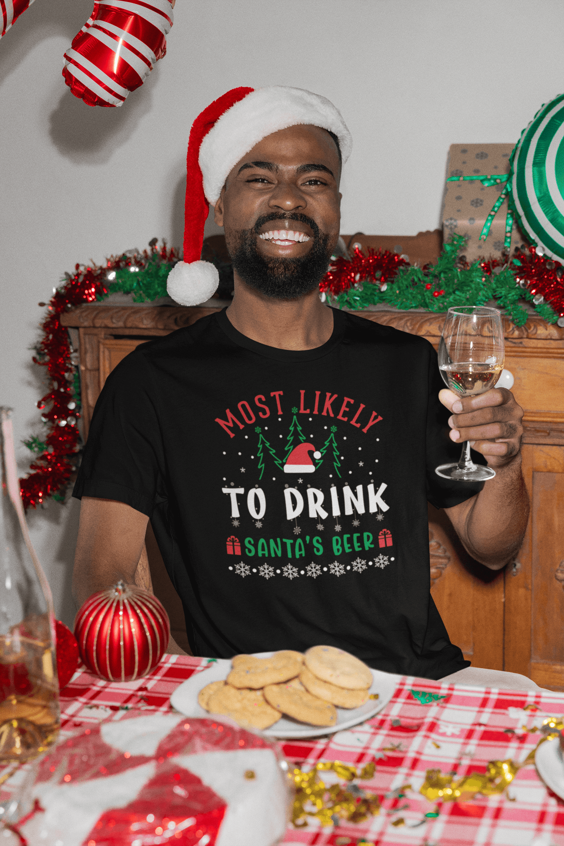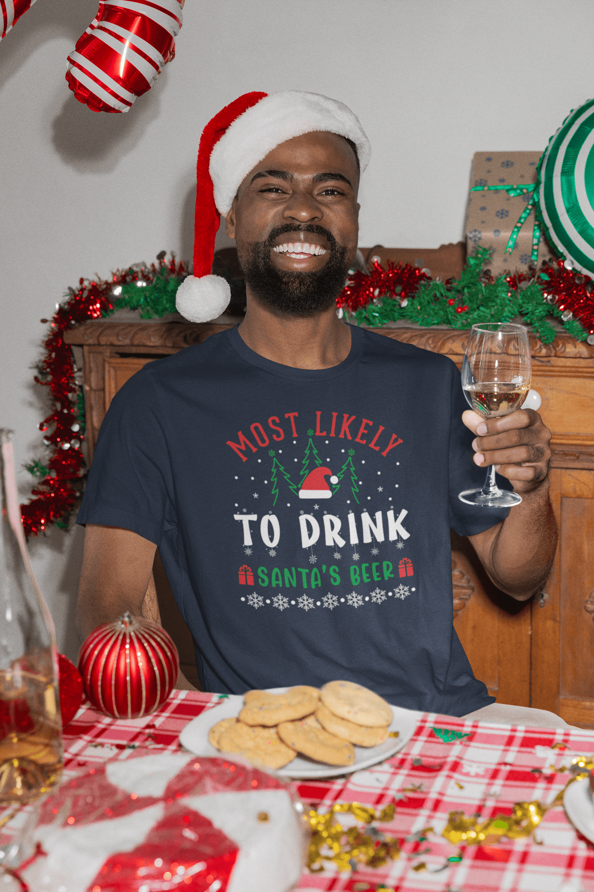 Celebrate the season with a laugh in our 'Most Likely Santa's Beer' T-shirt! Perfect for the holiday party MVP, this playful design combines festive Christmas trees, a cheeky Santa hat, and bold holiday colors to capture the spirit of fun and mischief. Whether you're sipping on holiday brews or gifting some holiday humor, this shirt is guaranteed to spread cheer (and maybe a little laughter). Don’t miss out—grab yours now and be the life of the Christmas celebration!