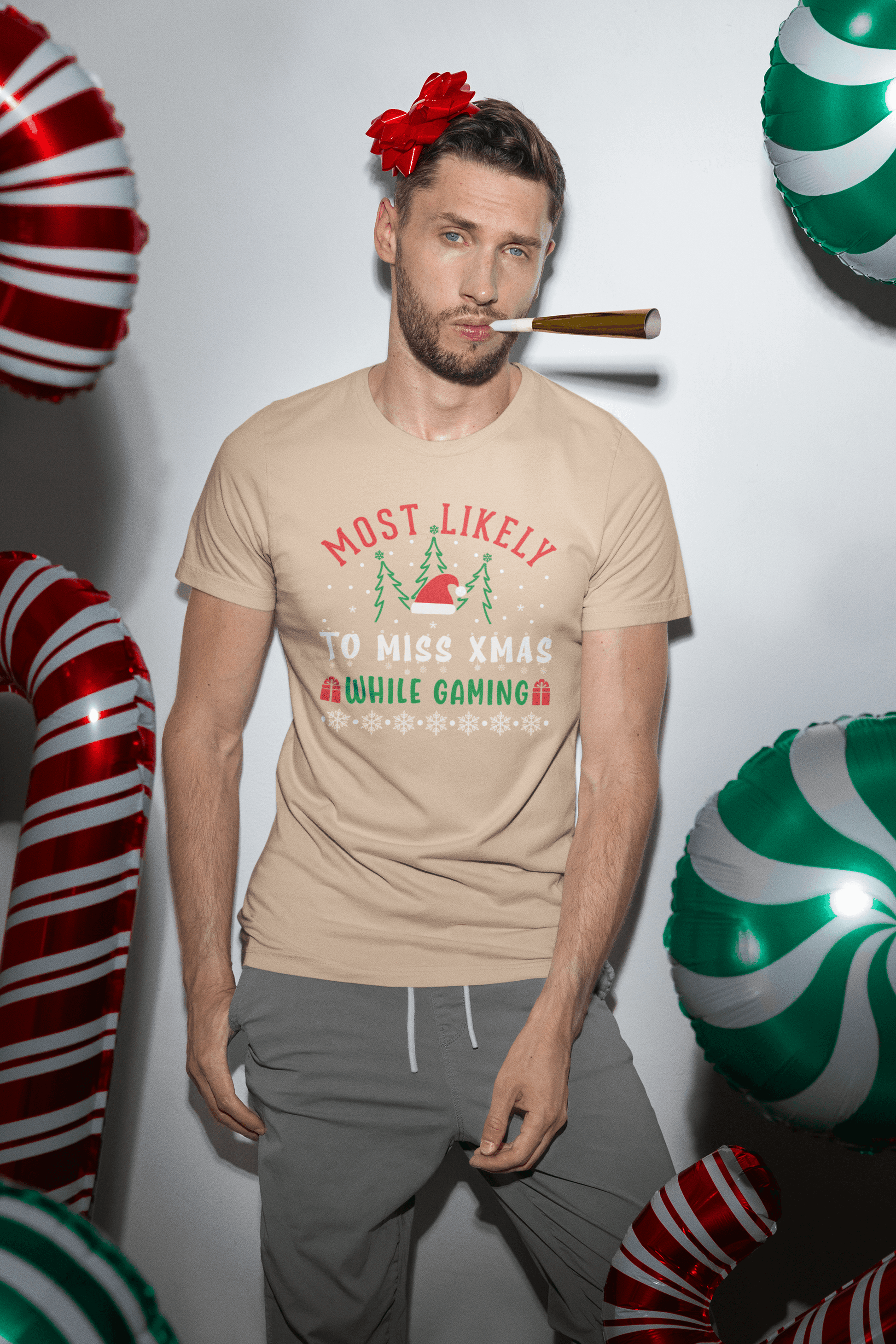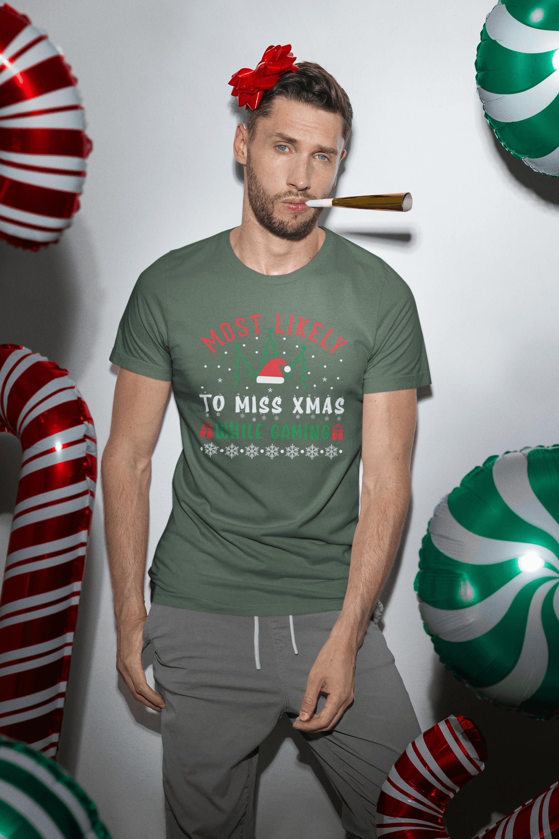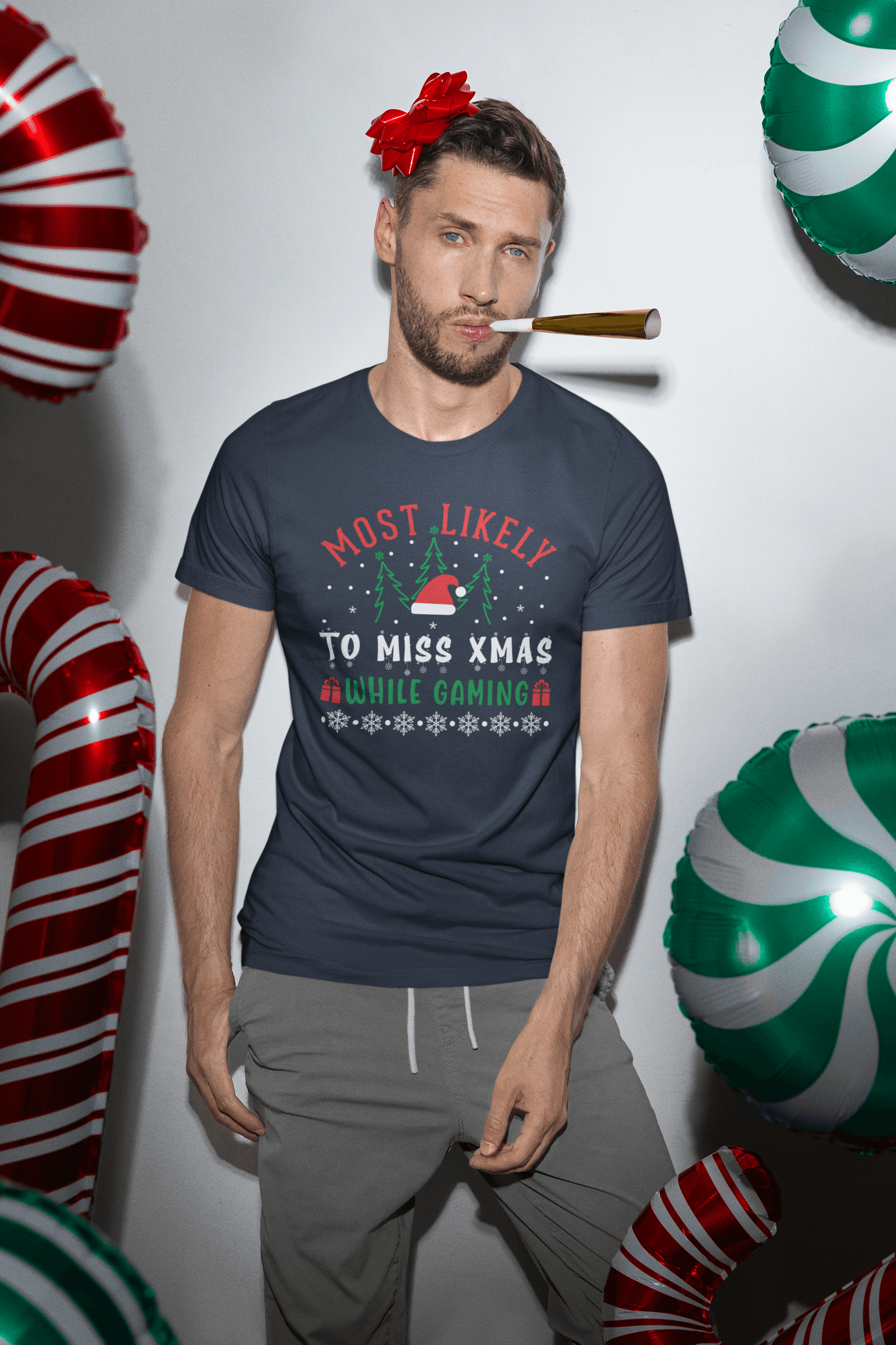 Level up your holiday vibes with our 'Most Likely To Miss XMAS While Gaming' T-shirt! Designed for the gamer who doesn’t pause for Christmas, this festive design features Christmas trees, snowflakes, and a Santa hat in classic red and green. Perfect for cozy gaming marathons or virtual holiday parties, this shirt is a great gift for the player who always takes the win—even during the holidays. Grab yours now and keep the game (and holiday spirit) going strong! Also available in youth sizes.