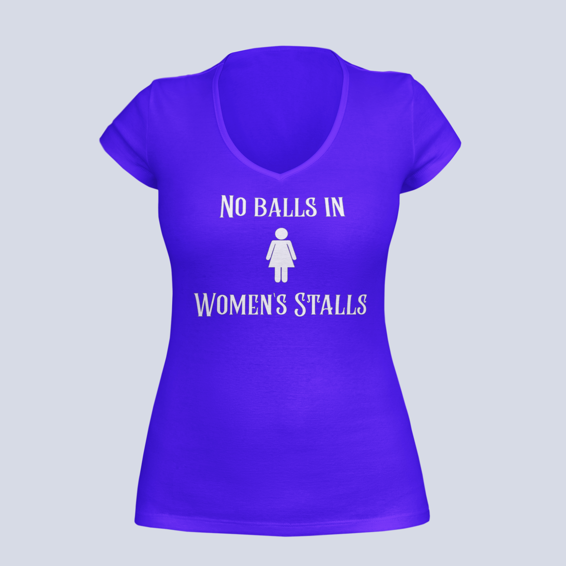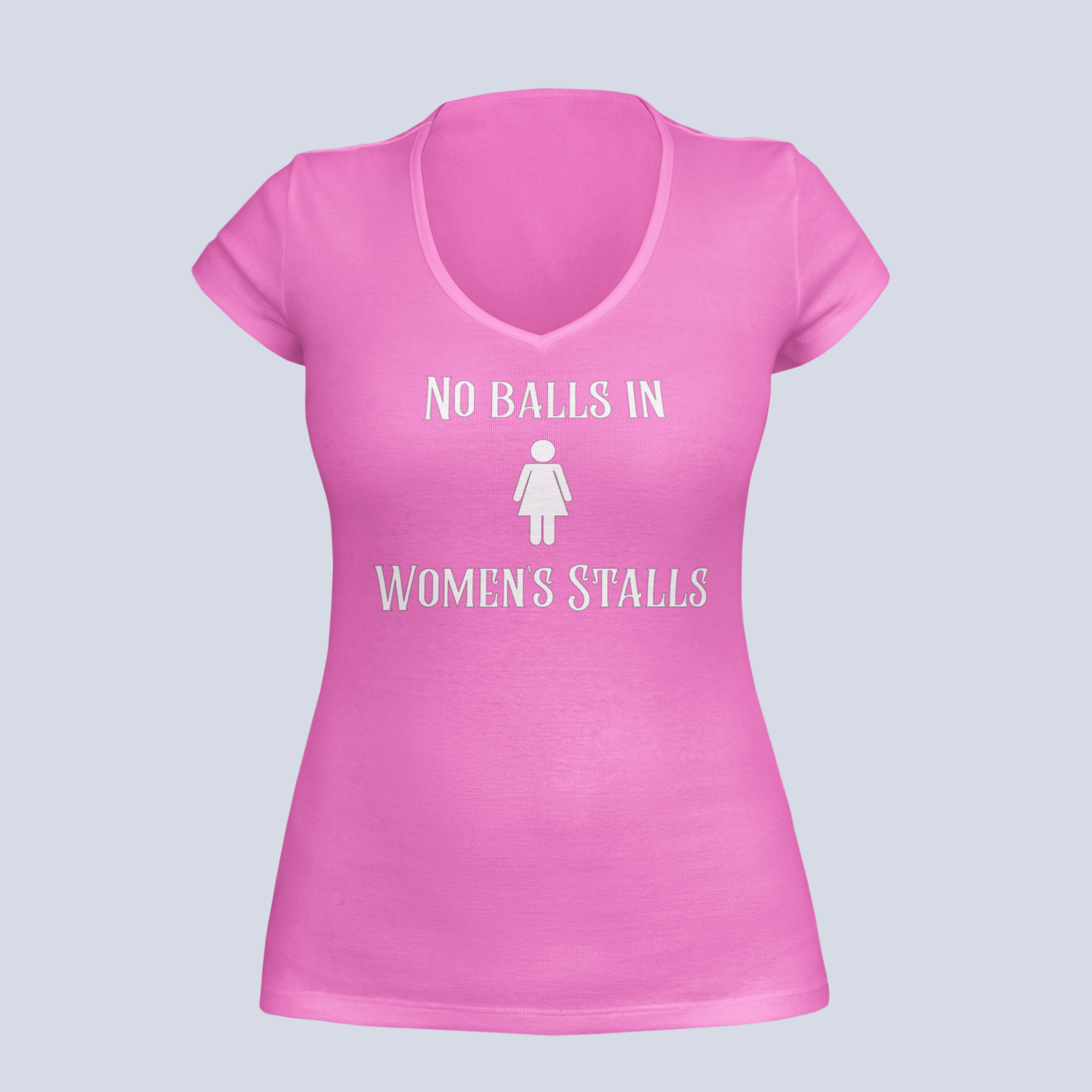 No Balls in Women's Stalls - Ladies V-Neck T-Shirt