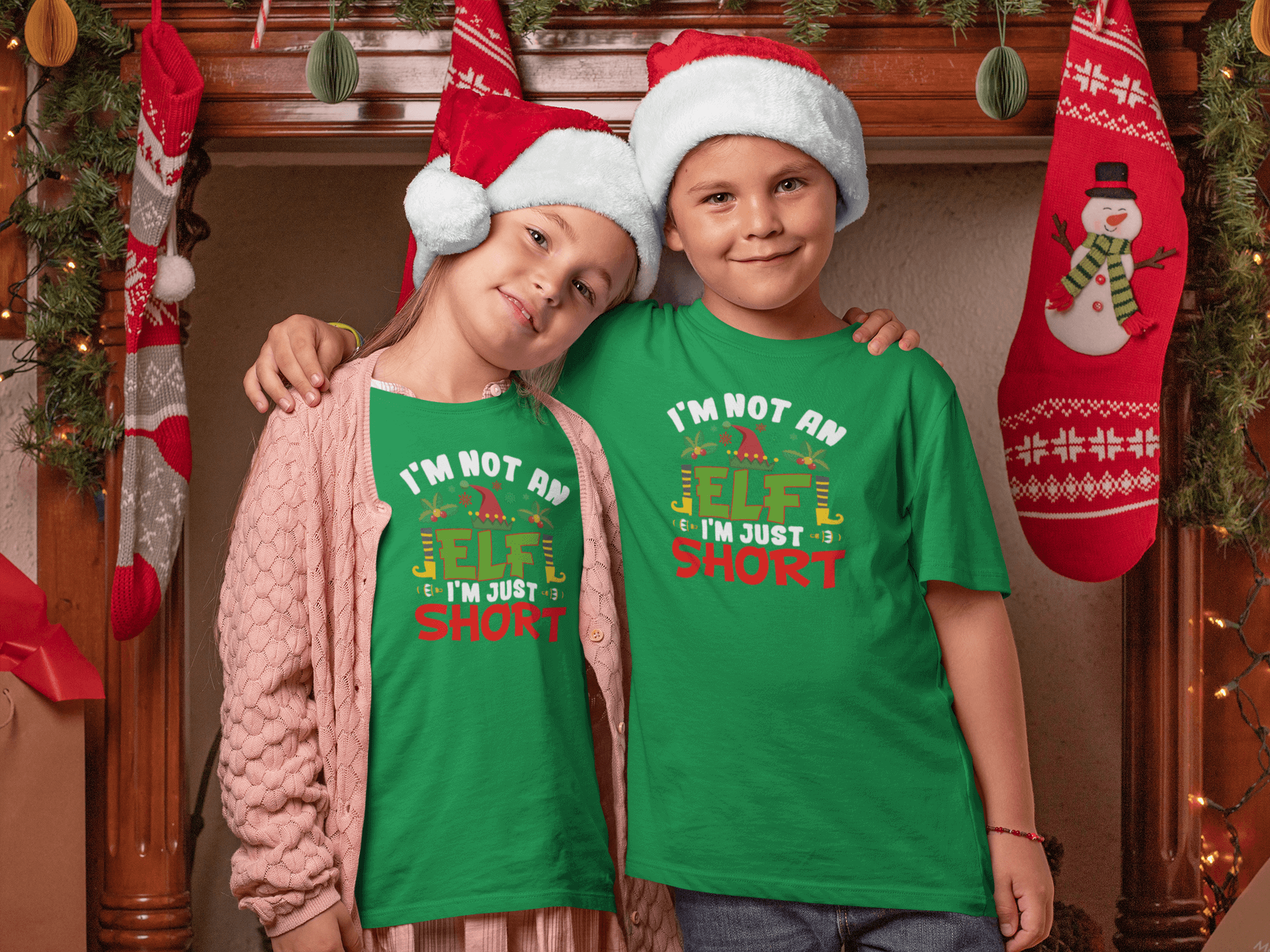 Bring some laughs to your holiday gatherings with this hilarious "I’m Not an Elf, I’m Just Short" t-shirt! Perfect for anyone who embraces their height with humor, this comfy tee is ideal for Christmas parties, gift exchanges, or lounging by the tree. Pair it with your favorite festive accessories and spread some cheer. Get yours today and let your personality shine this season!