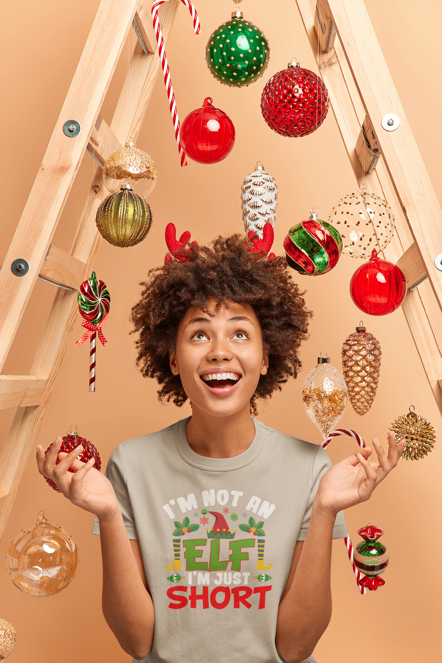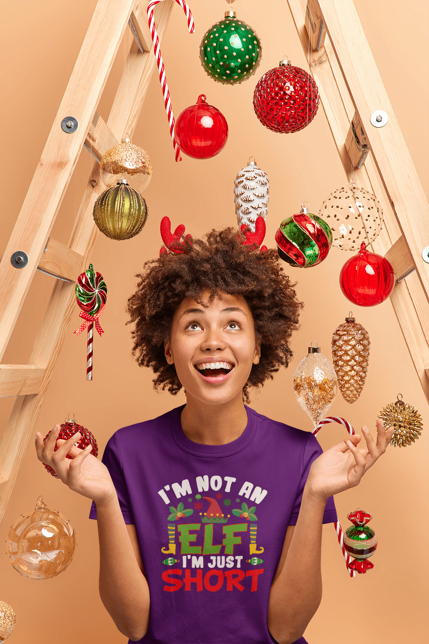 Bring some laughs to your holiday gatherings with this hilarious "I’m Not an Elf, I’m Just Short" t-shirt! Perfect for anyone who embraces their height with humor, this comfy tee is ideal for Christmas parties, gift exchanges, or lounging by the tree. Pair it with your favorite festive accessories and spread some cheer. Get yours today and let your personality shine this season!