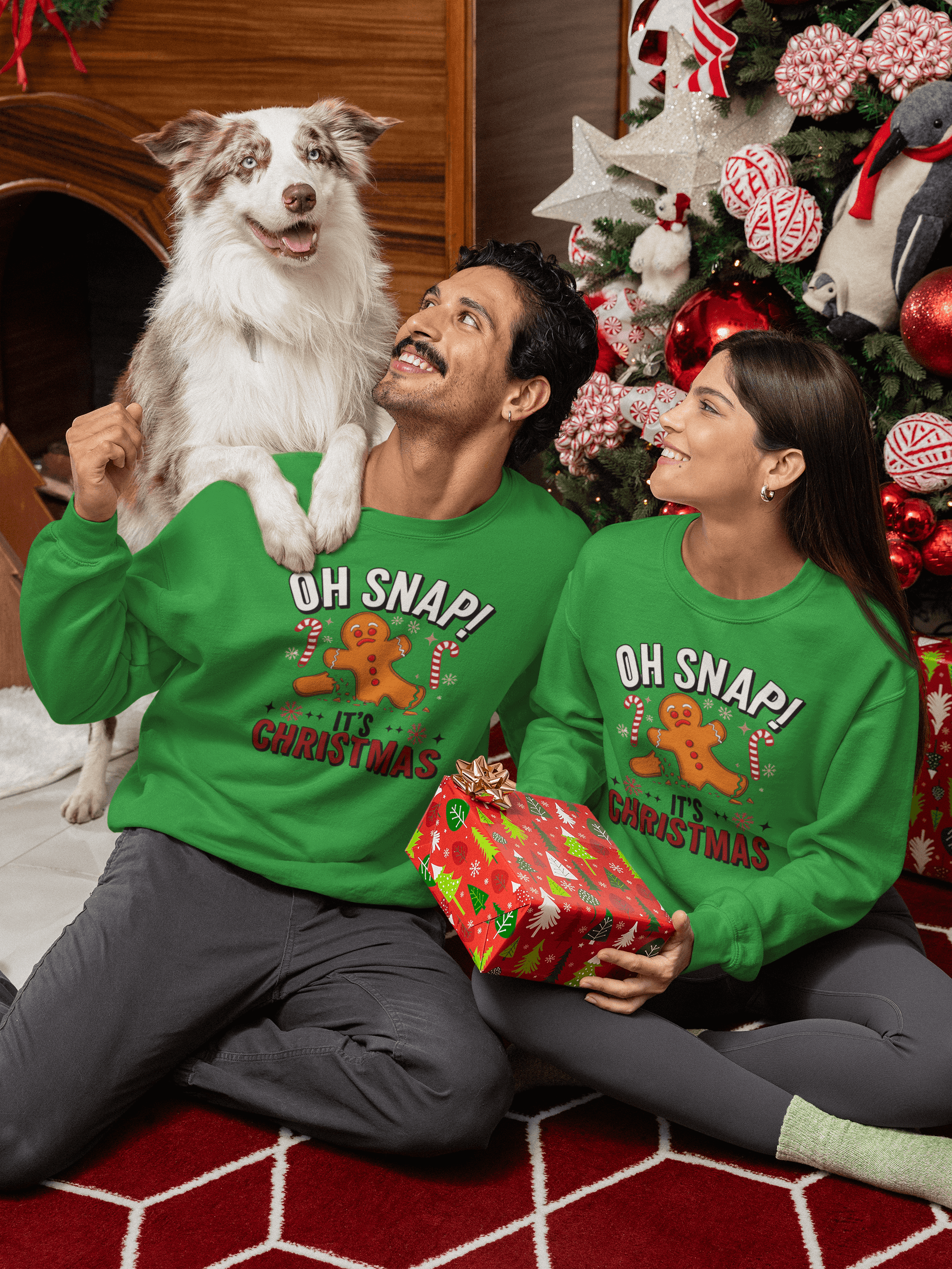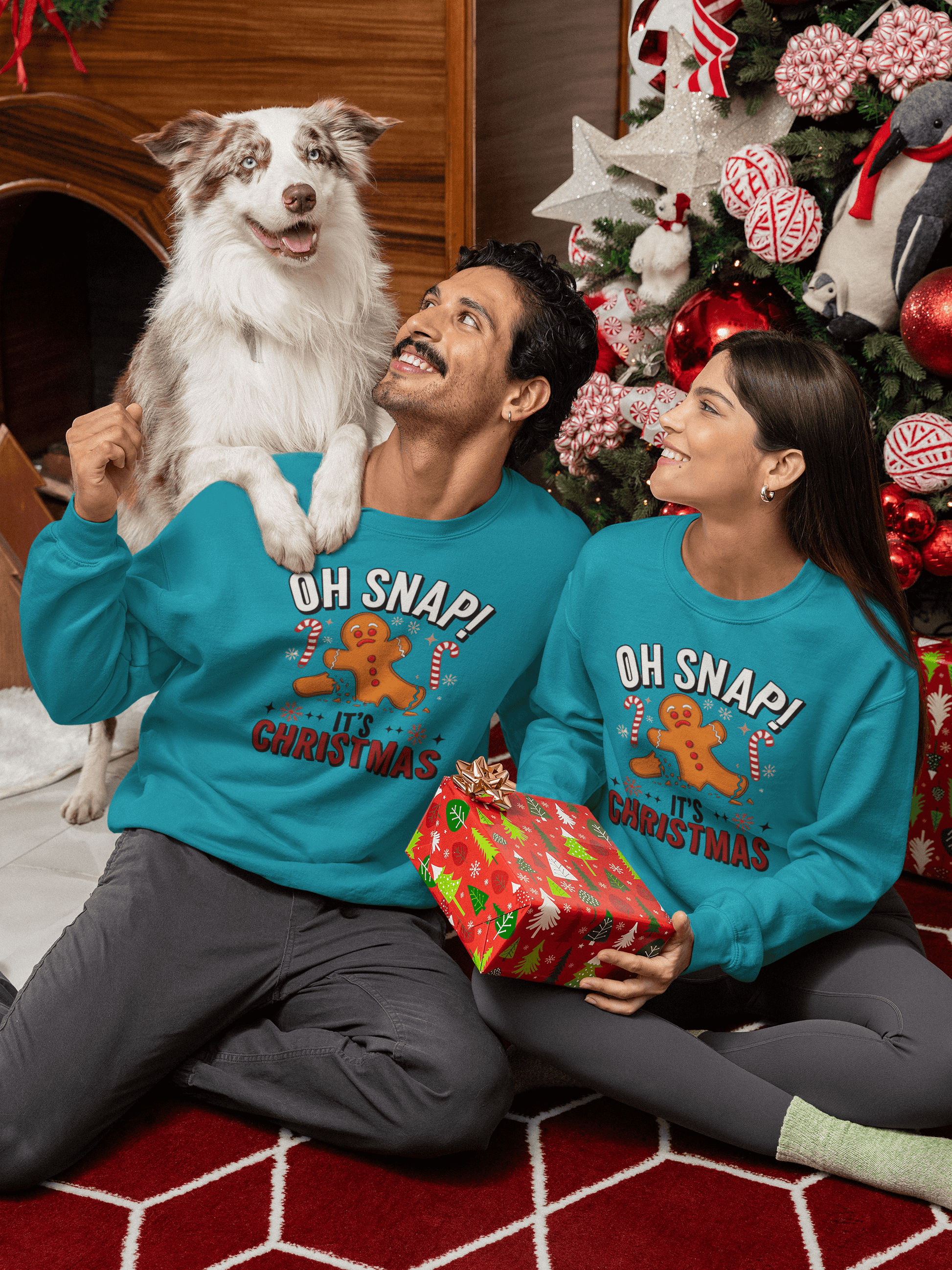 Add some humor to the holidays with our "Oh Snap! Christmas" Sweatshirt featuring a hilariously panicked gingerbread man. Perfect for Christmas morning, parties, or wrapping presents in style, this sweatshirt combines festive fun with cozy comfort. Available in sizes for everyone, it's a great way to share the laughs this season. Don’t wait—snap one up today and make your holidays extra sweet!
