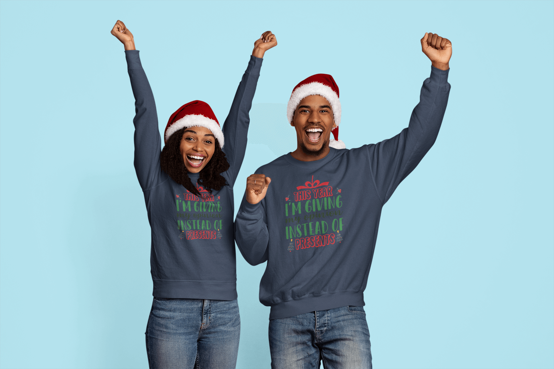 his design delivers a dose of humor and holiday spirit! Featuring bold, festive typography accented with Christmas elements like holly, trees, and a gift bow, it playfully declares, "This year, I'm giving my opinion instead of presents." Perfect for those who like to keep it real during the holidays, this shirt is great for gatherings where honesty is the best gift of all.