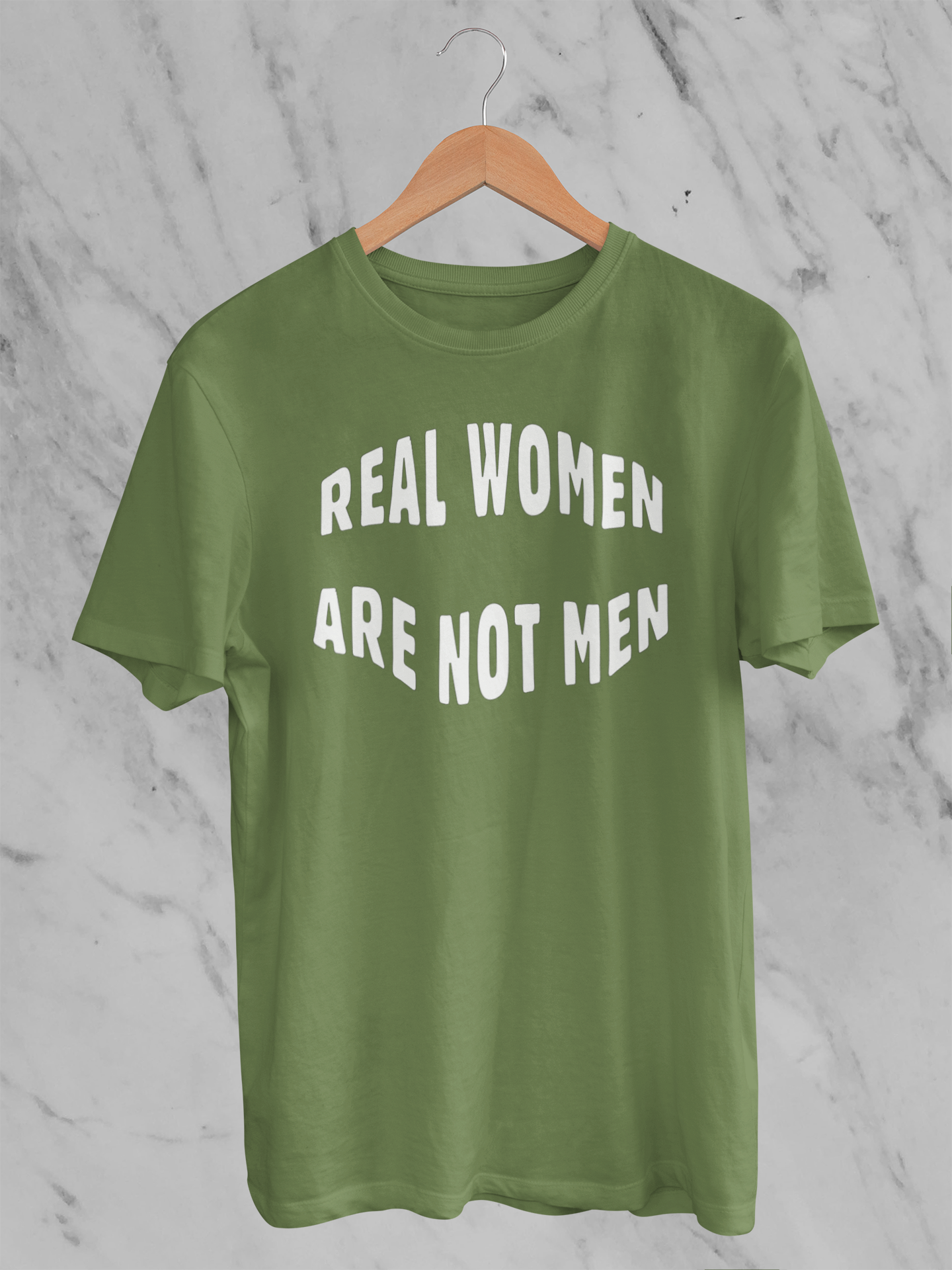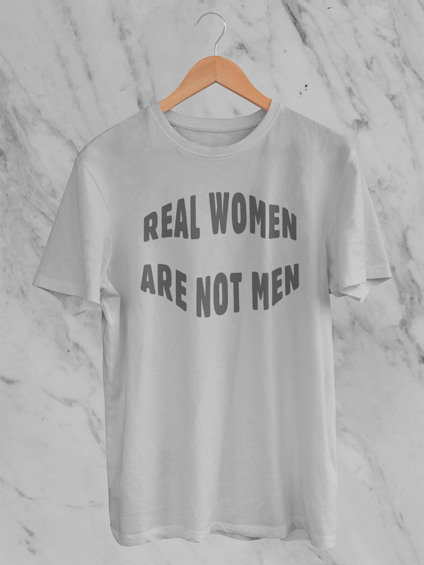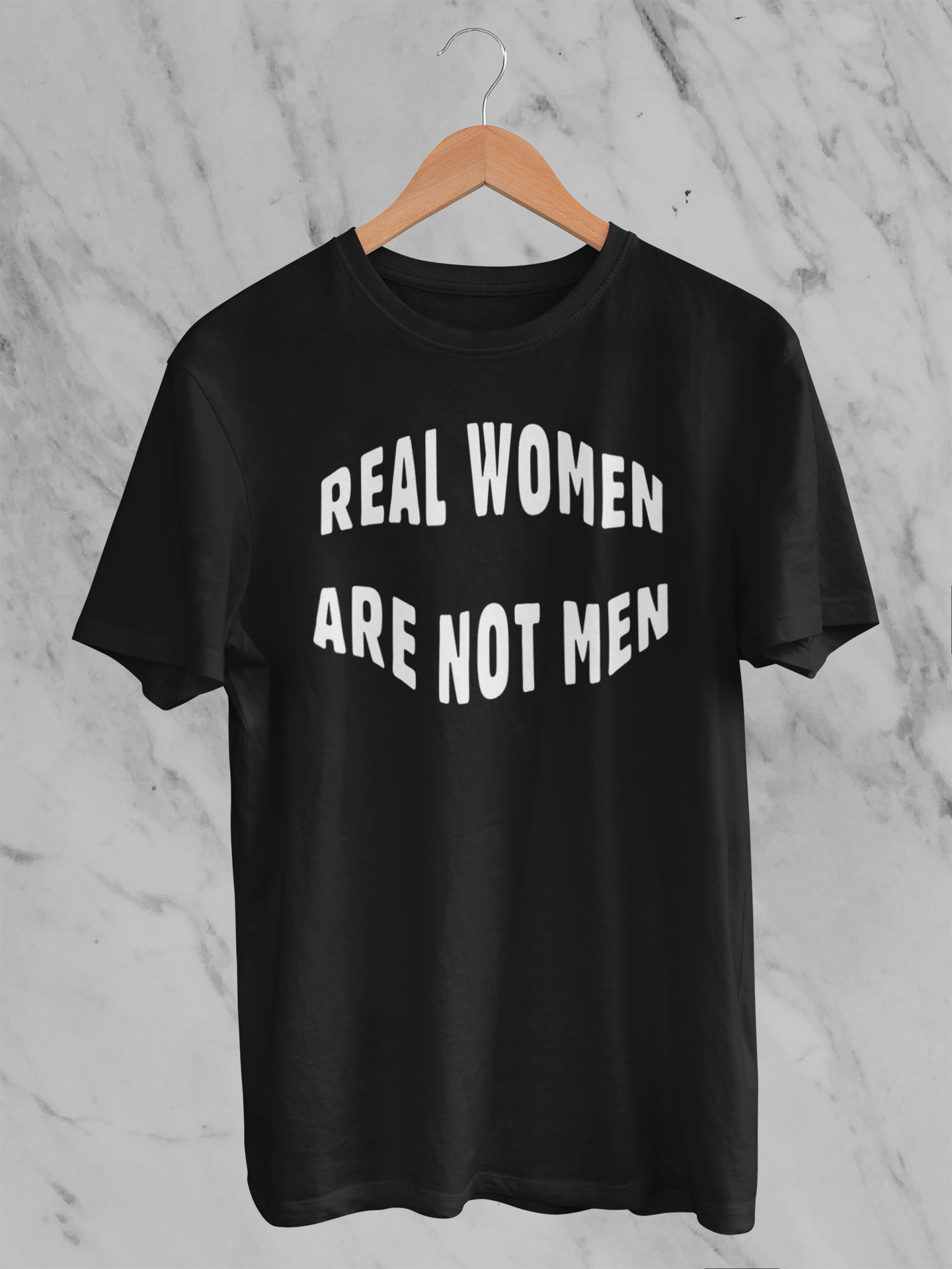 Make a definitive statement with this bold T-shirt that carries a powerful declaration: 'Real Women Are Not Men.' Crafted to spark conversation and promote awareness, this T-shirt is made for those who believe in speaking out for the dignity and recognition of womanhood and quite frankly good old fashioned common sense.