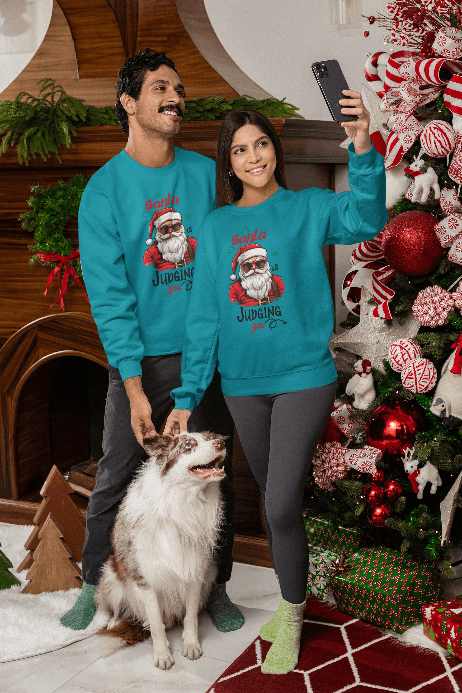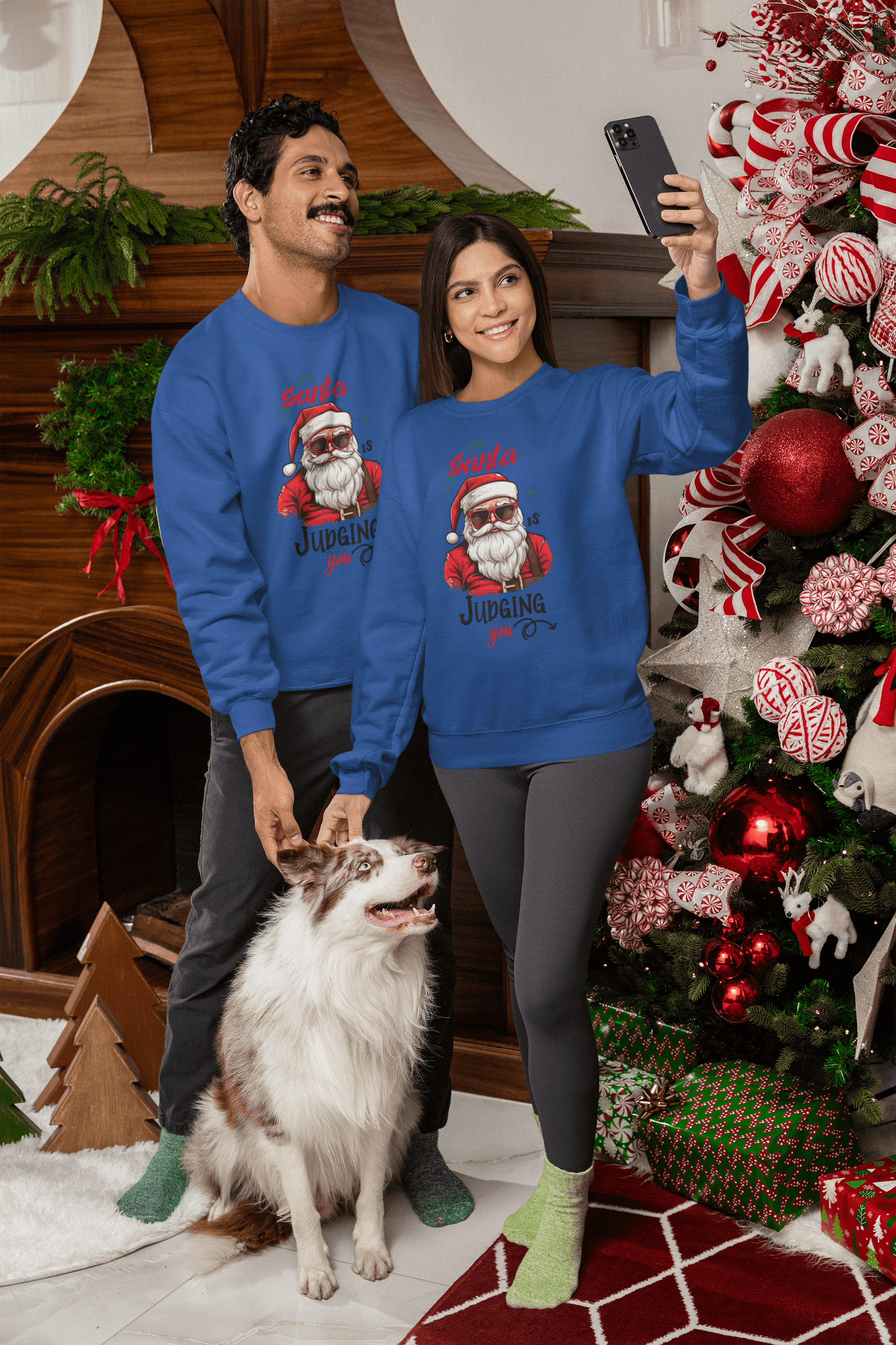 Stay on your best behavior with this sassy and stylish "Santa is Judging You" Sweatshirt! Featuring a cool, sunglasses-wearing Santa ready to size up your naughty or nice status, this design adds a fun twist to the traditional holiday look. Perfect for those who love a little cheeky humor with their Christmas cheer, this sweatshirt is a great pick for holiday parties, gift exchanges, or just letting everyone know Santa’s got his eye on them. Comfortable, festive, and full of attitude, this sweatshirt is a must-have for the season!
