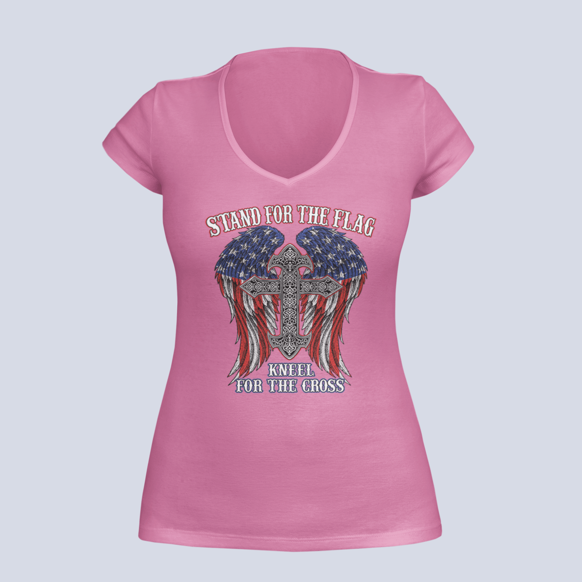 Stand for the Flag Winged Cross - Ladies V-Neck