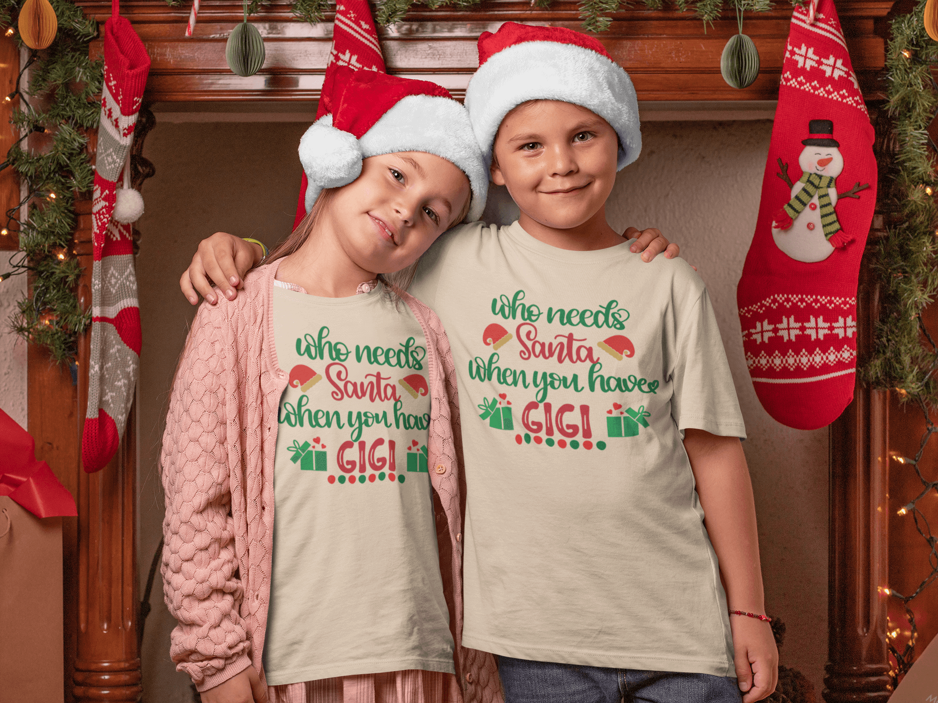 Make Christmas extra special with this adorable kids' T-shirt featuring the playful phrase, "Who Needs Santa When I've Got GIGI!" This fun and festive design, complete with holly, Christmas trees, and a Santa hat, is perfect for little ones who know GIGI is the real holiday MVP. Whether it's for opening presents, baking cookies, or GIGI's famous snuggles, this shirt will bring big smiles to kids and GIGI's alike. Soft, comfy, and full of holiday cheer, it’s the perfect way to show some love for GIGI this Christmas season!
