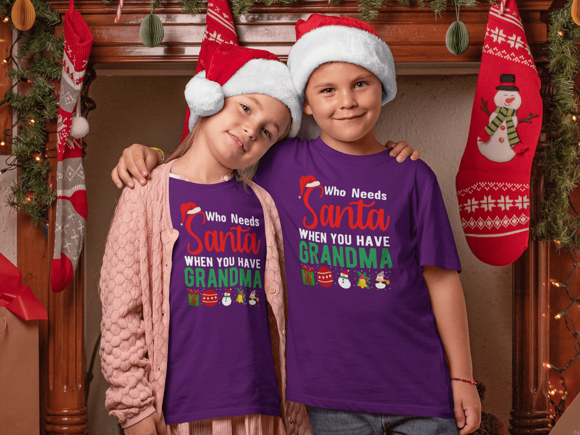 Make Christmas extra special with this adorable kids' T-shirt featuring the playful phrase, "Who Needs Santa When I've Got GRANDMA!" This fun and festive design, complete with holly, Christmas trees, and a Santa hat, is perfect for little ones who know GRANDMA is the real holiday MVP. Whether it's for opening presents, baking cookies, or GRANDMA's famous snuggles, this shirt will bring big smiles to kids and GRANDMA's alike. Soft, comfy, and full of holiday cheer, it’s the perfect way to show some love for GRANDMA this Christmas season!
