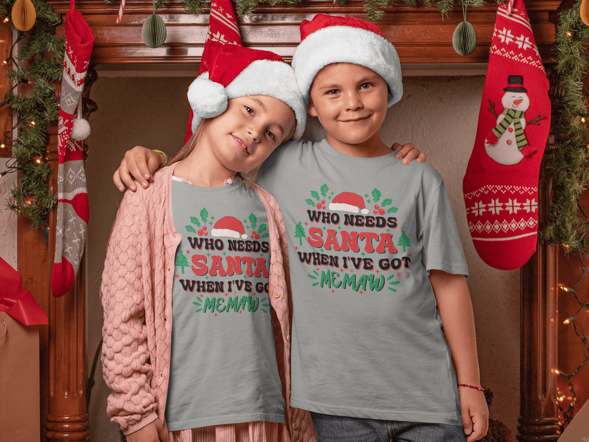 Make Christmas extra special with this adorable kids' T-shirt featuring the playful phrase, "Who Needs Santa When I've Got MEMAW!" This fun and festive design, complete with holly, Christmas trees, and a Santa hat, is perfect for little ones who know MEMAW is the real holiday MVP. Whether it's for opening presents, baking cookies, or MEMAW's famous snuggles, this shirt will bring big smiles to kids and Memaw's alike. Soft, comfy, and full of holiday cheer, it’s the perfect way to show some love for MEMAW this Christmas season!